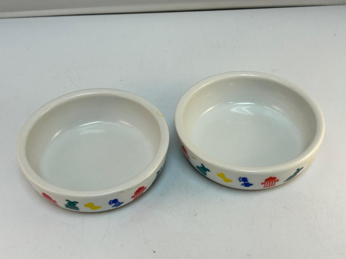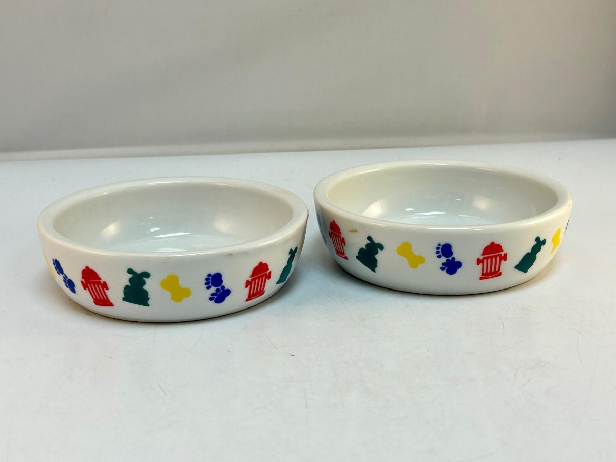 Pair of Small Shallow Pet Dog Puppy Food Bowls Dishes