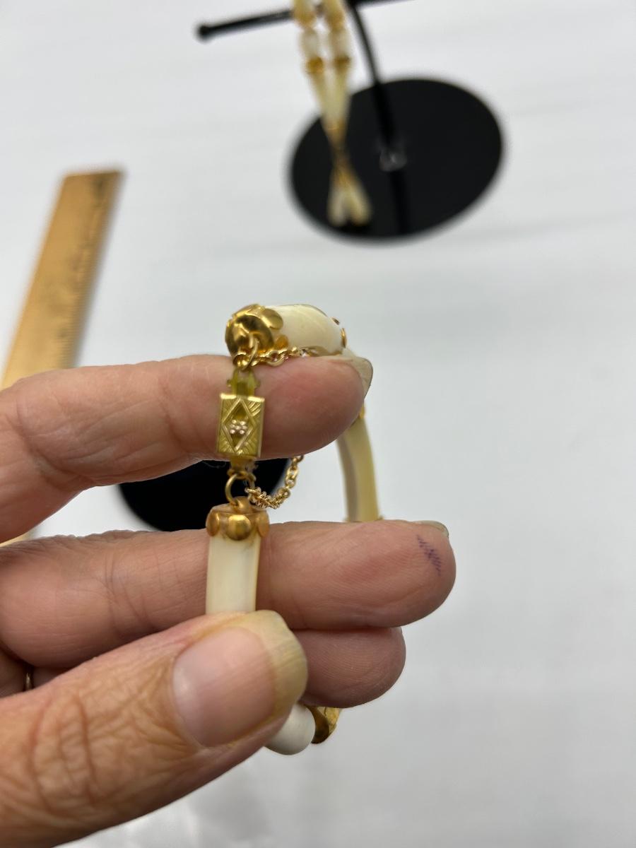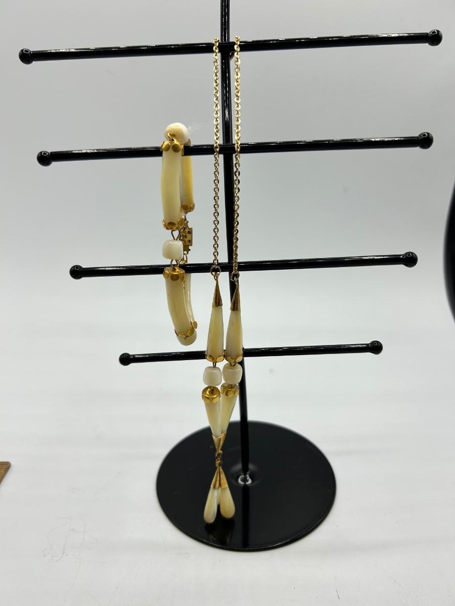 Vintage Moonstone Carved Shell Choker Necklace with Matching Bracelet Gold Tone Setting