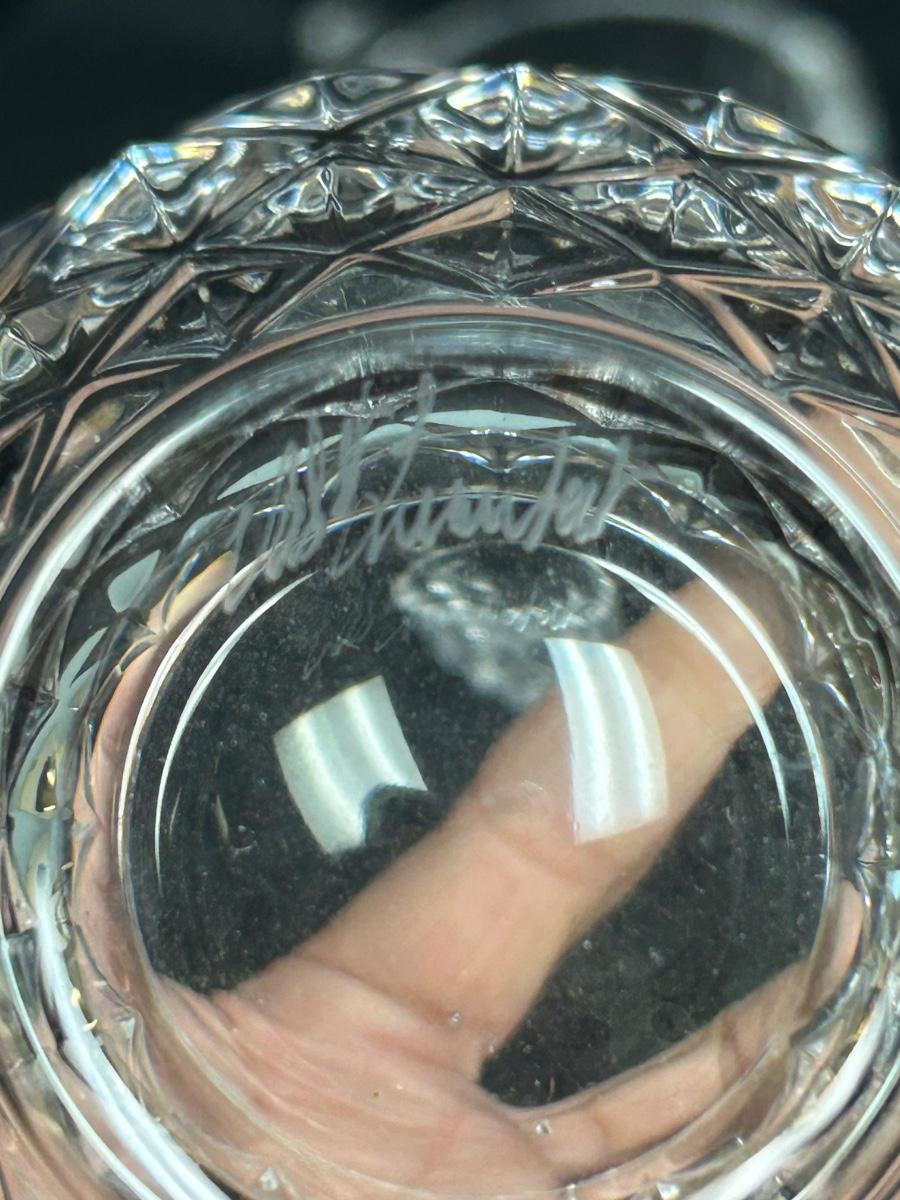 Vintage Crystal Creamer and Open Sugar Bowl Signed. In good condition. Both pieces are signed but I cannot make out the signature.