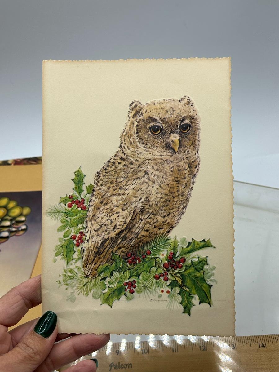 Framed Owl Christmas Card with Retro Grapes Art Card Underneath