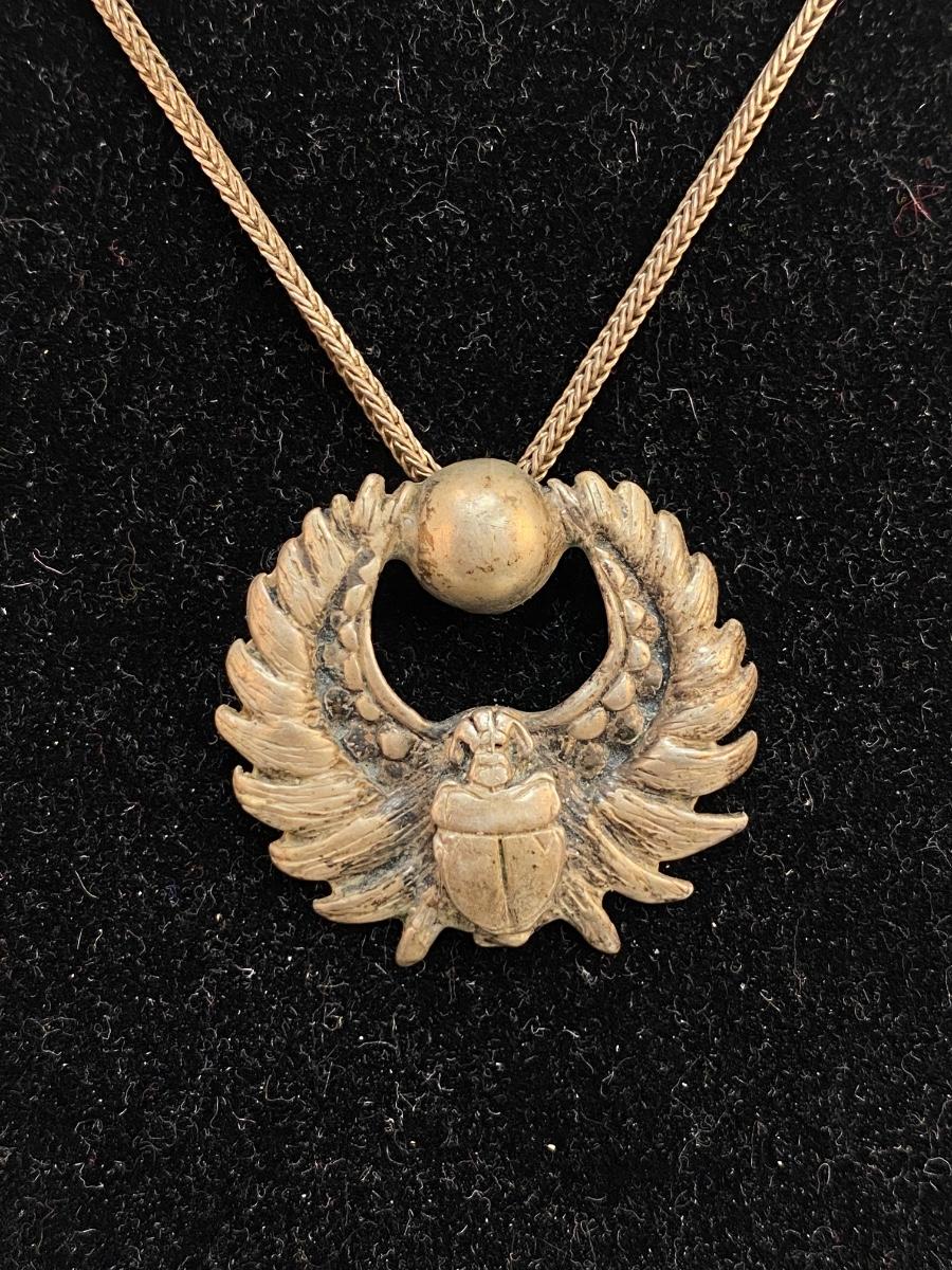 Vintage Sterling Silver Egyptian Revival Winged Scarab Pendant Necklace