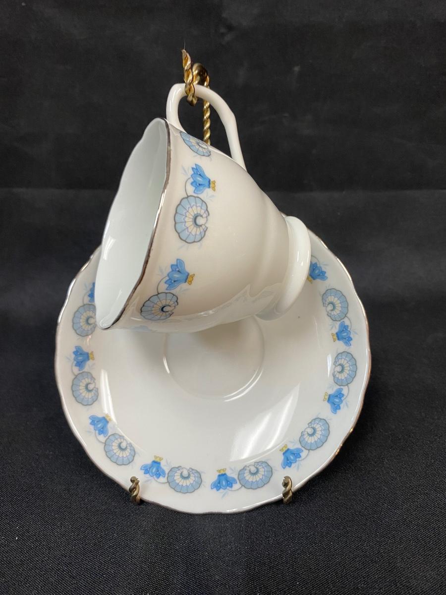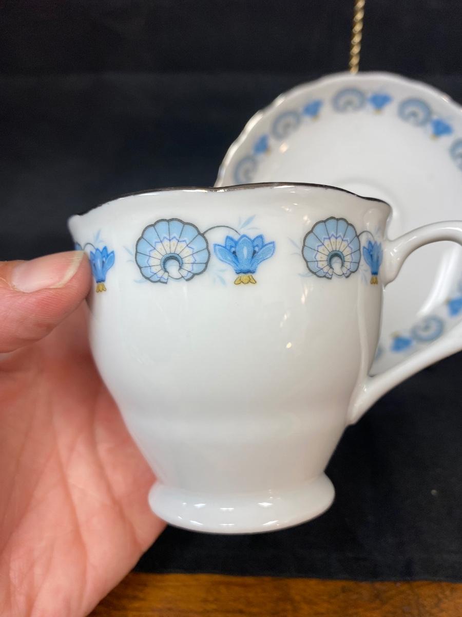 Vintage Blue Scallop Shell and Flower Teacup and Saucer Made in China