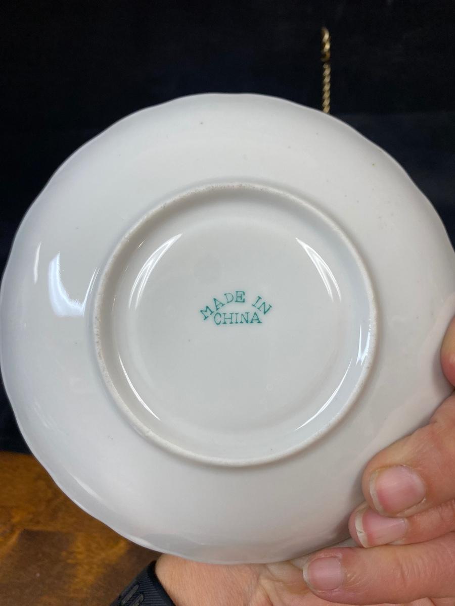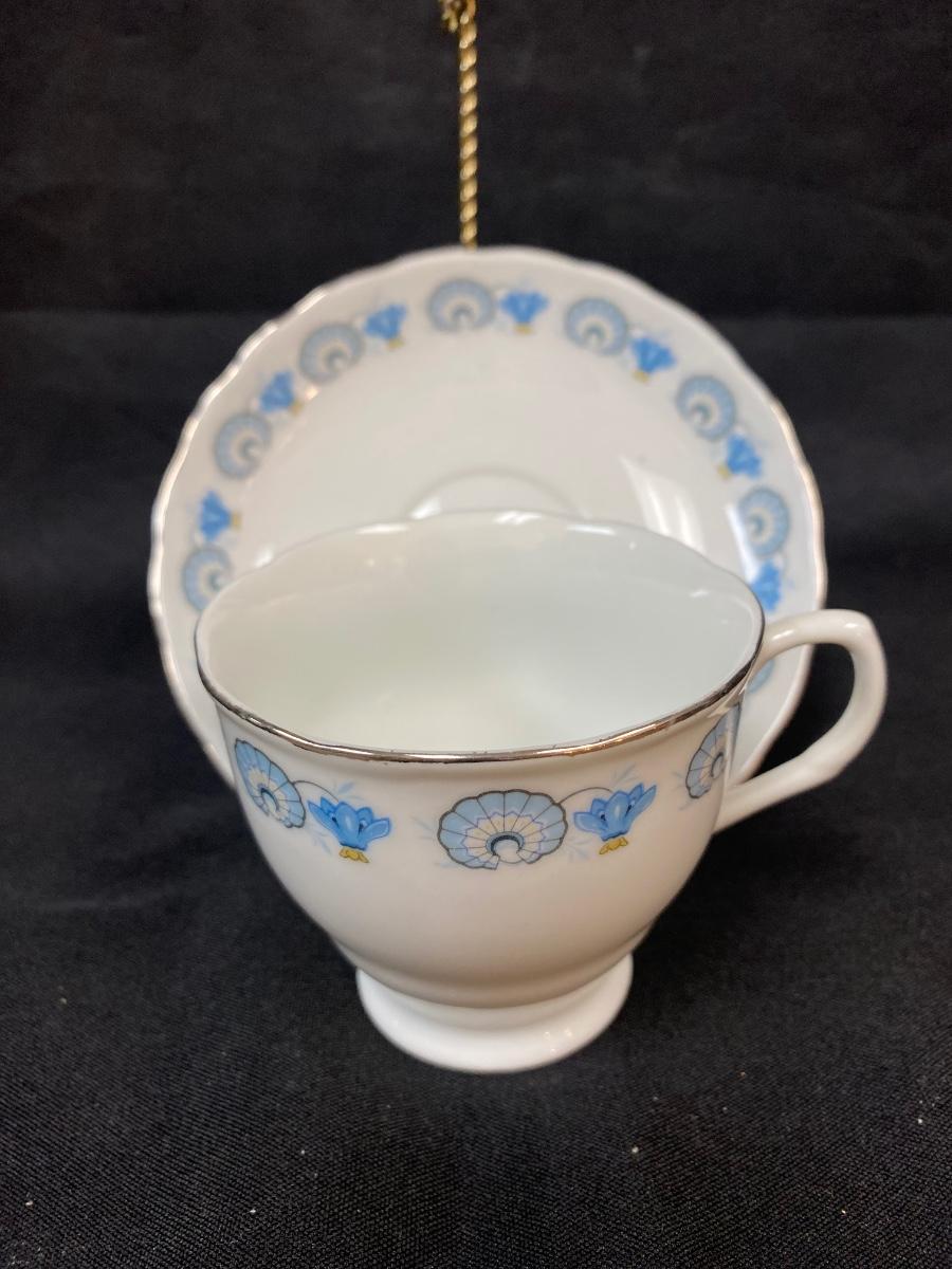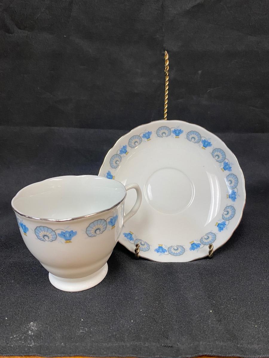 Vintage Blue Scallop Shell and Flower Teacup and Saucer Made in China. In good condition.