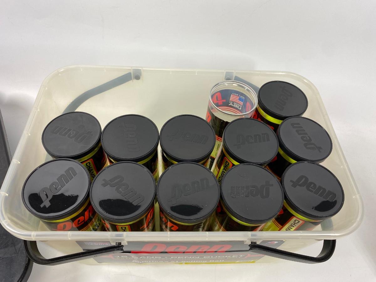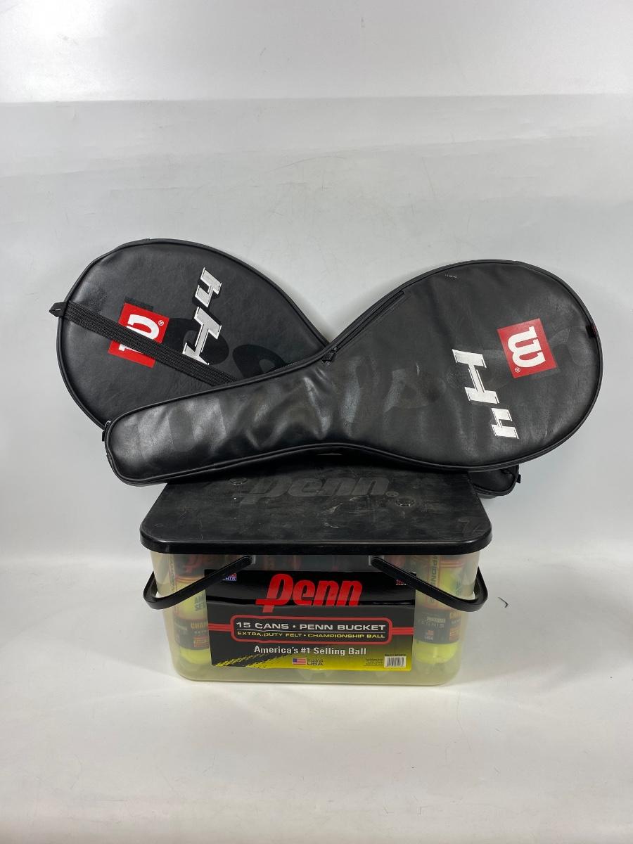Pair of Never Used New Wilson Tennis Rackets & Bin of PENN Tennis Balls