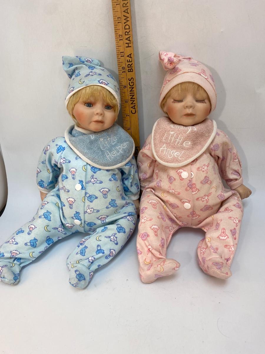 Ashton Drake Galleries Daddy's Little Helper & Mommy's Little Angel Porcelain Bisque Soft Body Dolls