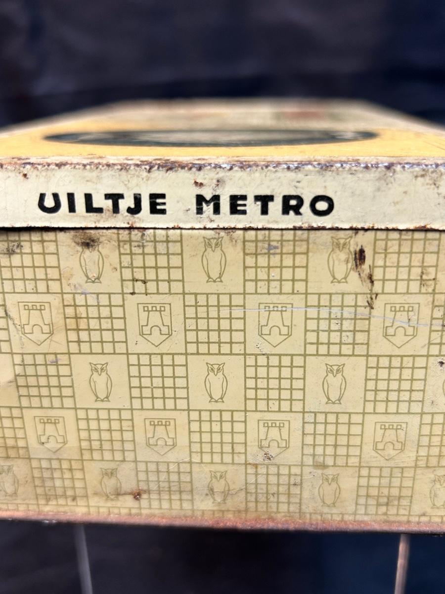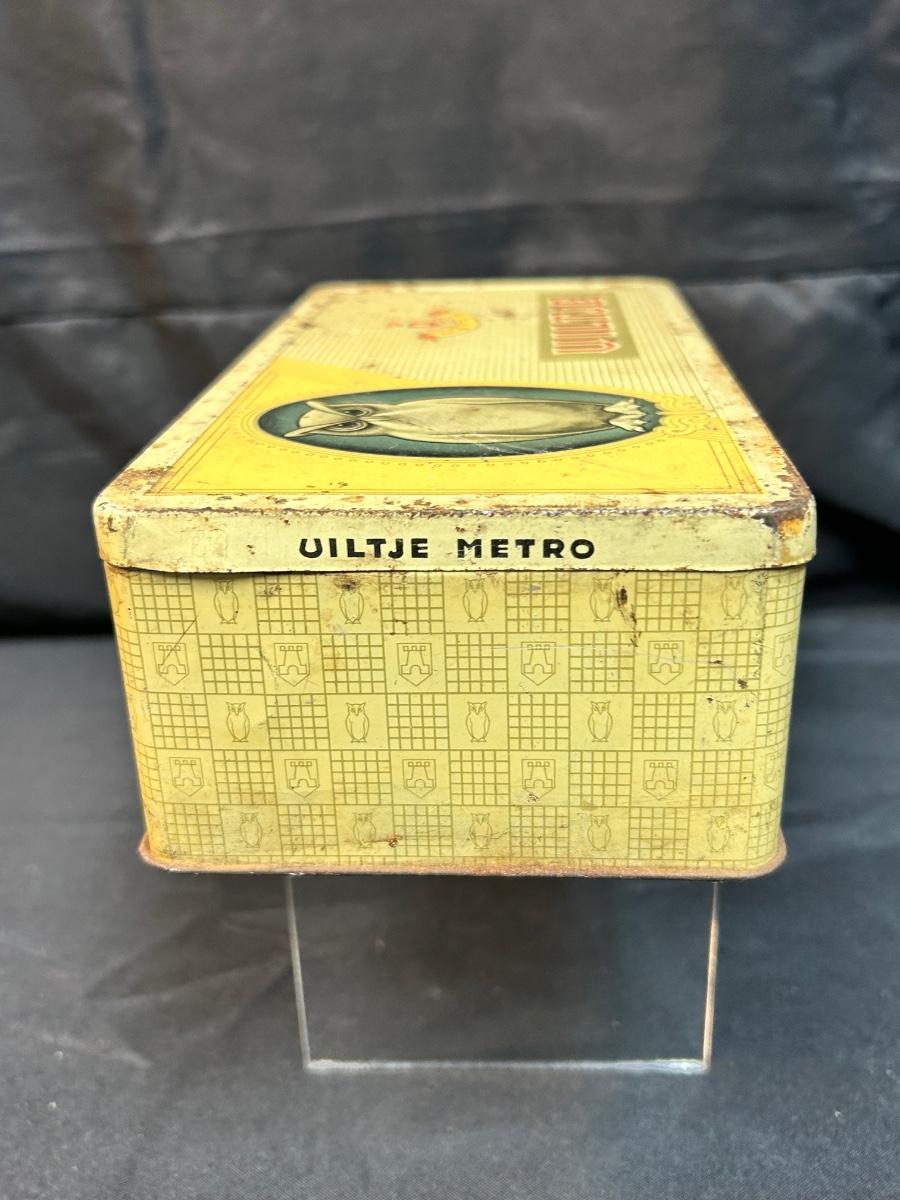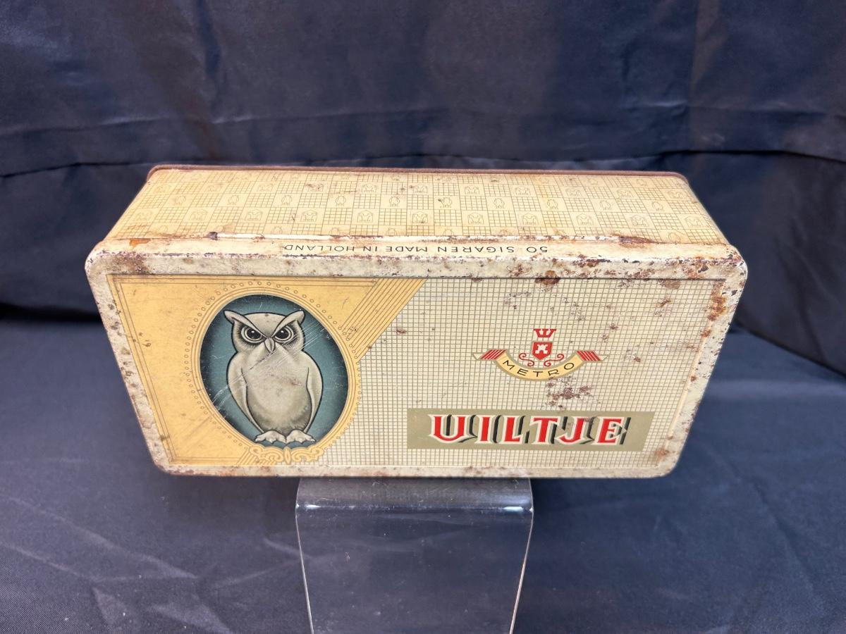 Vintage Metal Tin Cigar Cigarette Box Holland Owl Logo Uiltje Metro. In aged condition, some signs of age and rust but displays well.