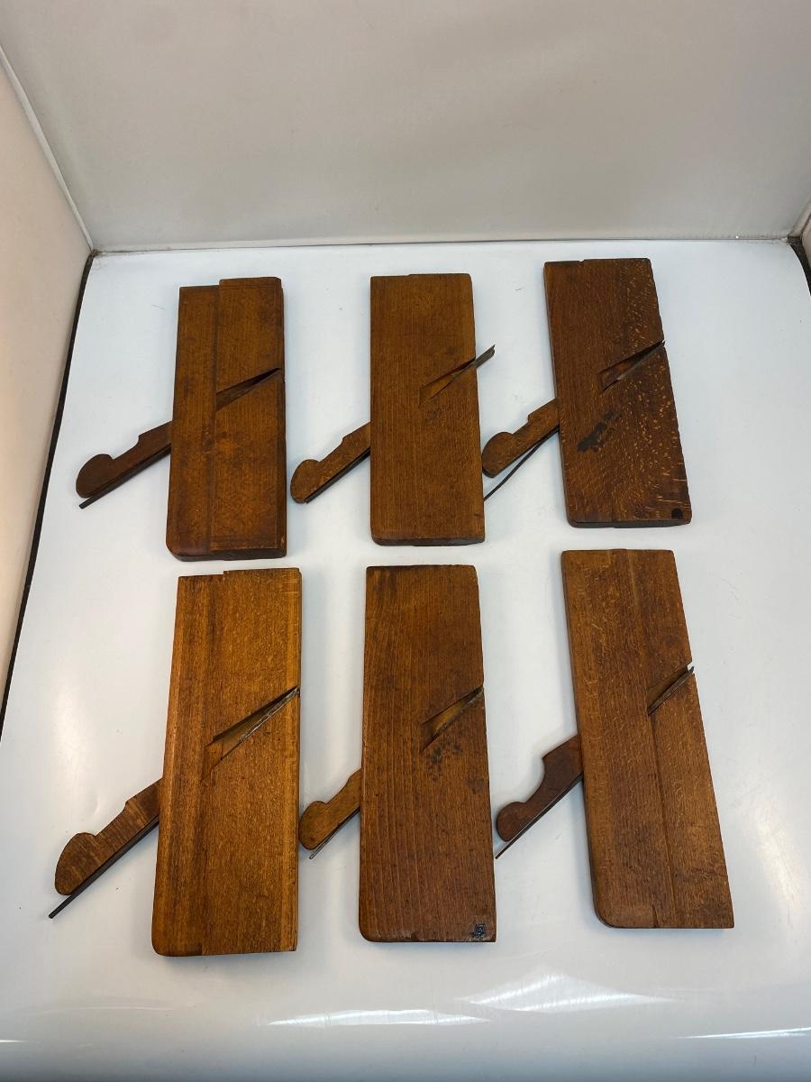 Lot of Six Fine Edge Rounding Curved Wood Planes with Blades