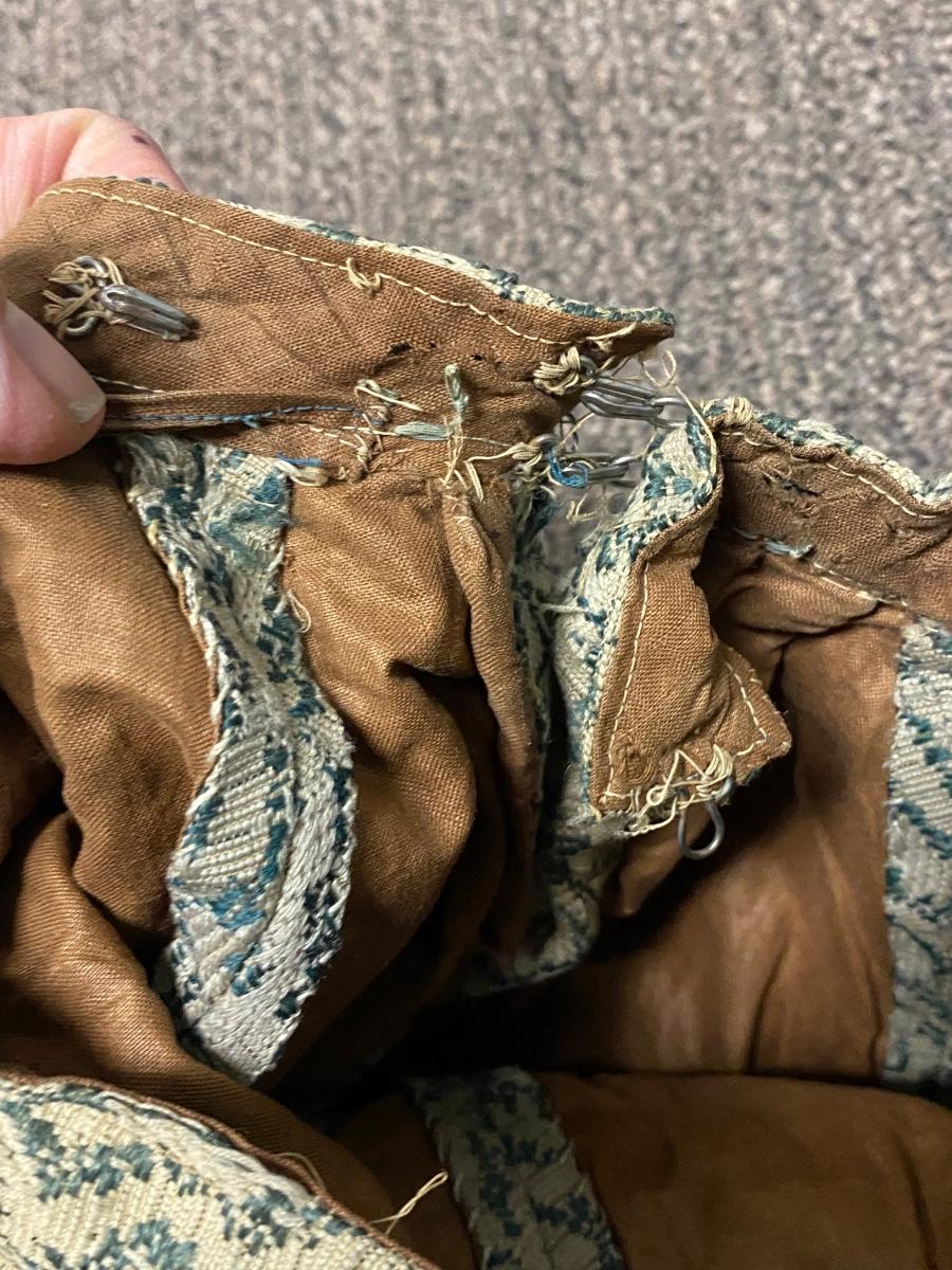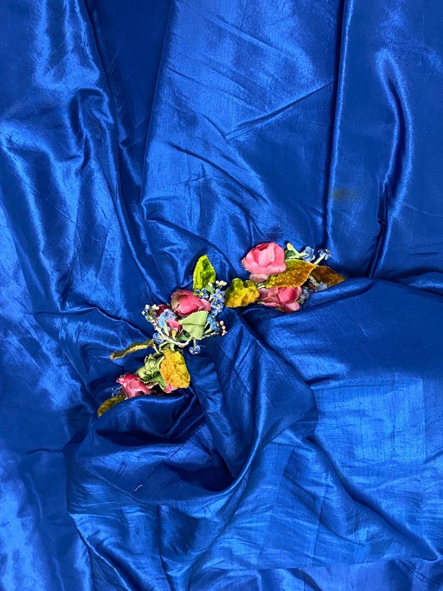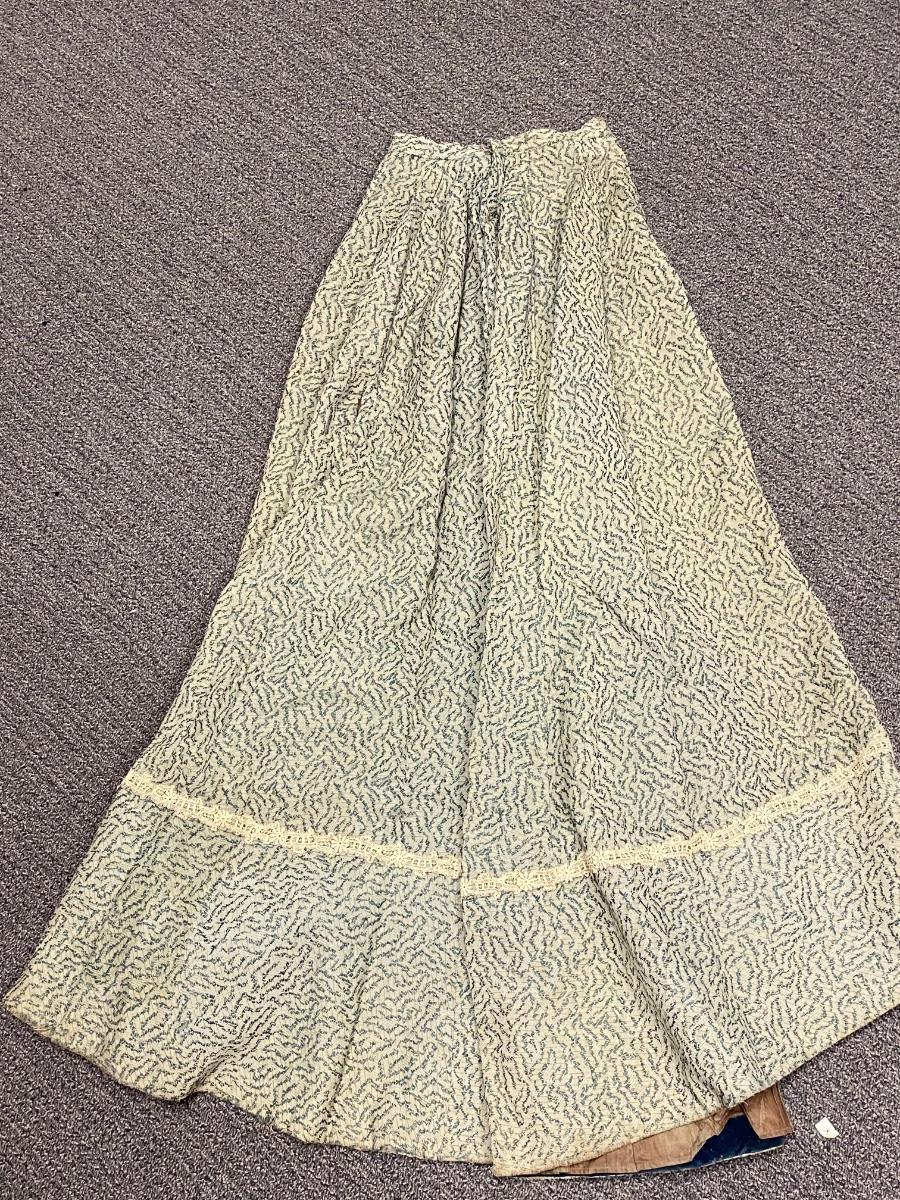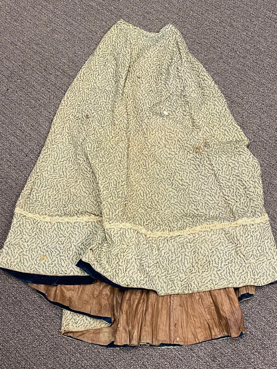 Pair of Vintage Antique Victorian Full Skirts. Both are in blue color. The more solid skirt is a lighter weight, the other is on the heavier side. There is discoloration and signs of age, but no major damage noticed.