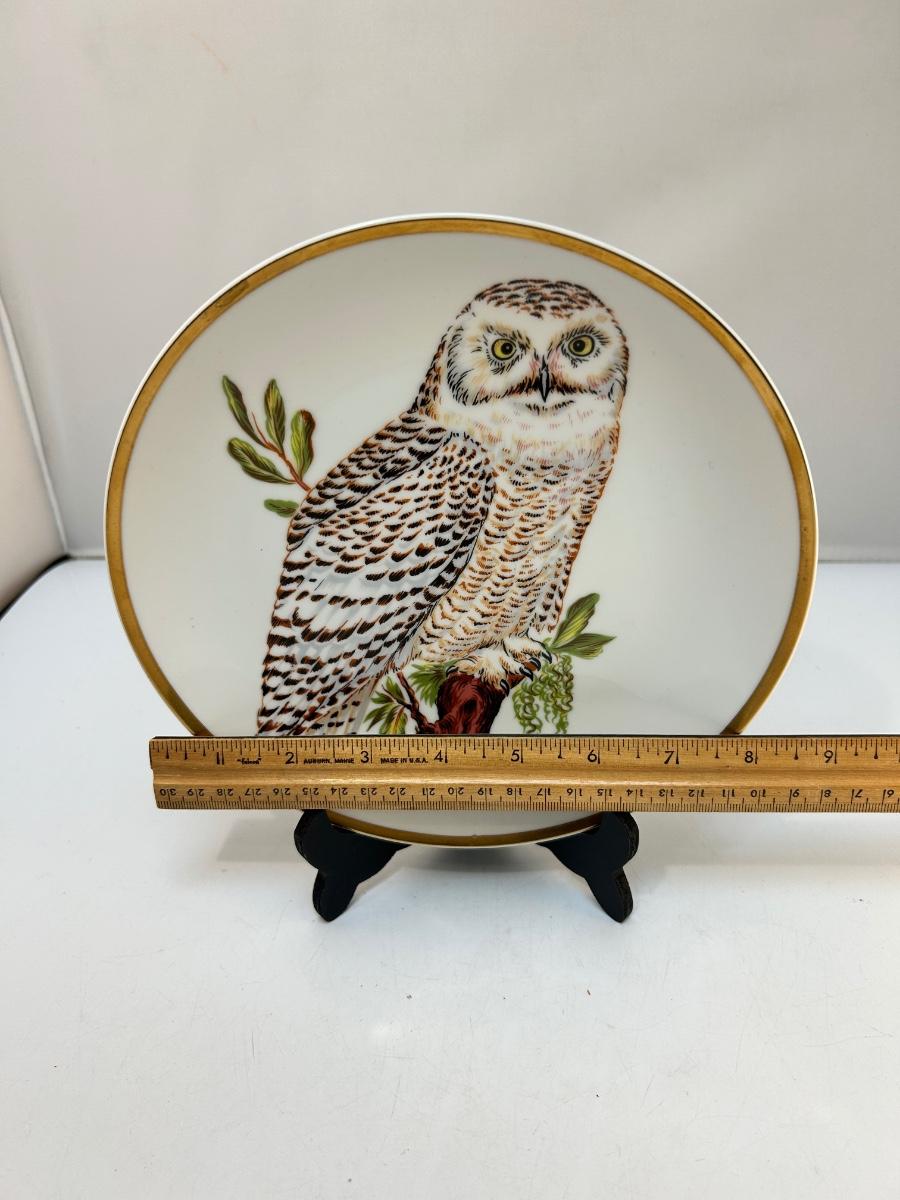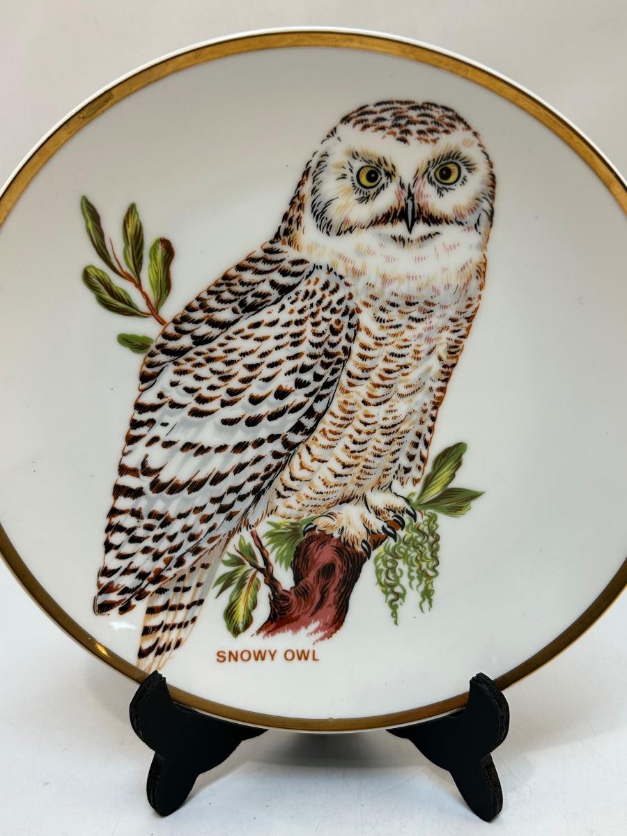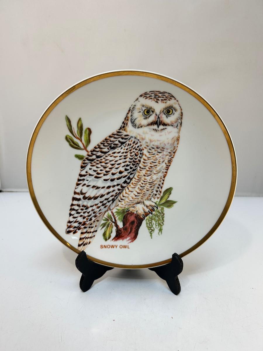 Vintage Retro Snowy Owl 24k Trimmed Porcelain Plate China Charm by Fawn