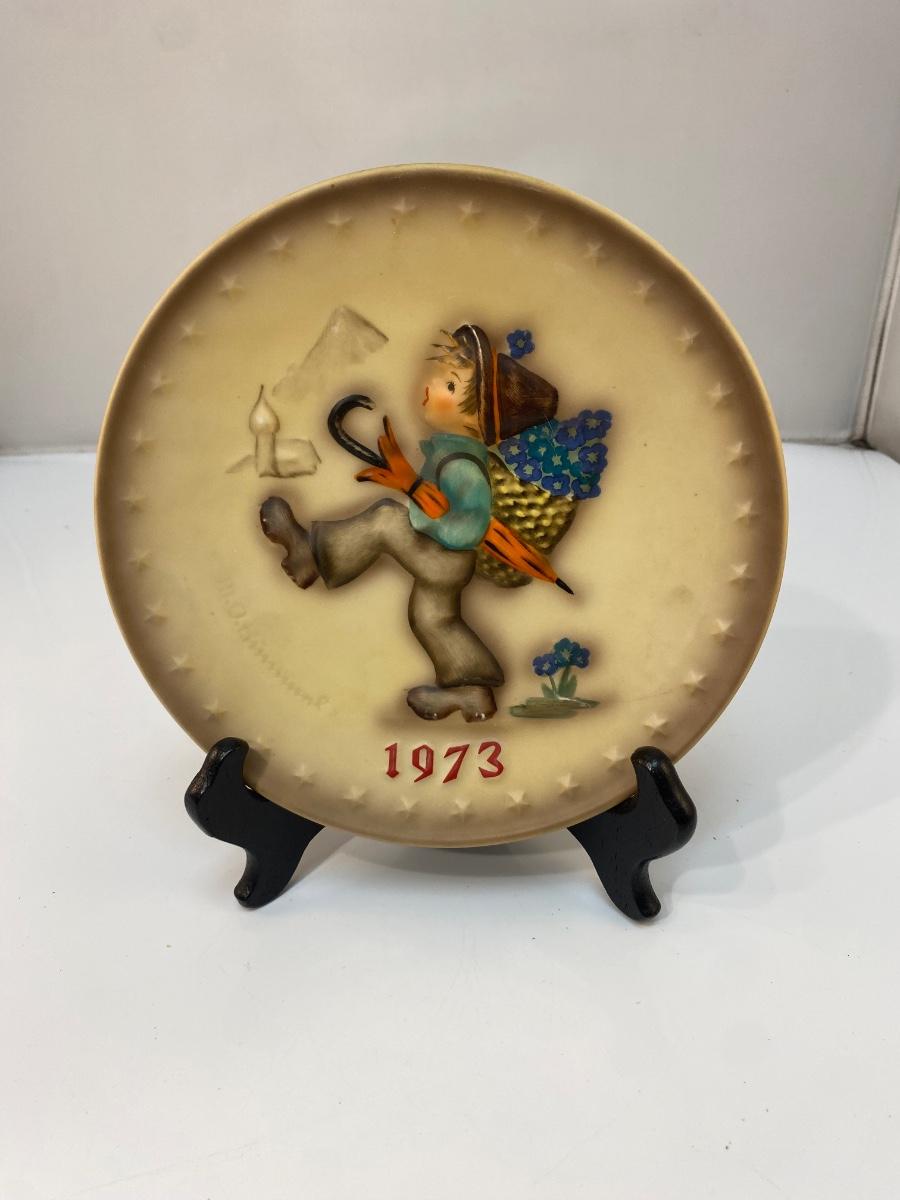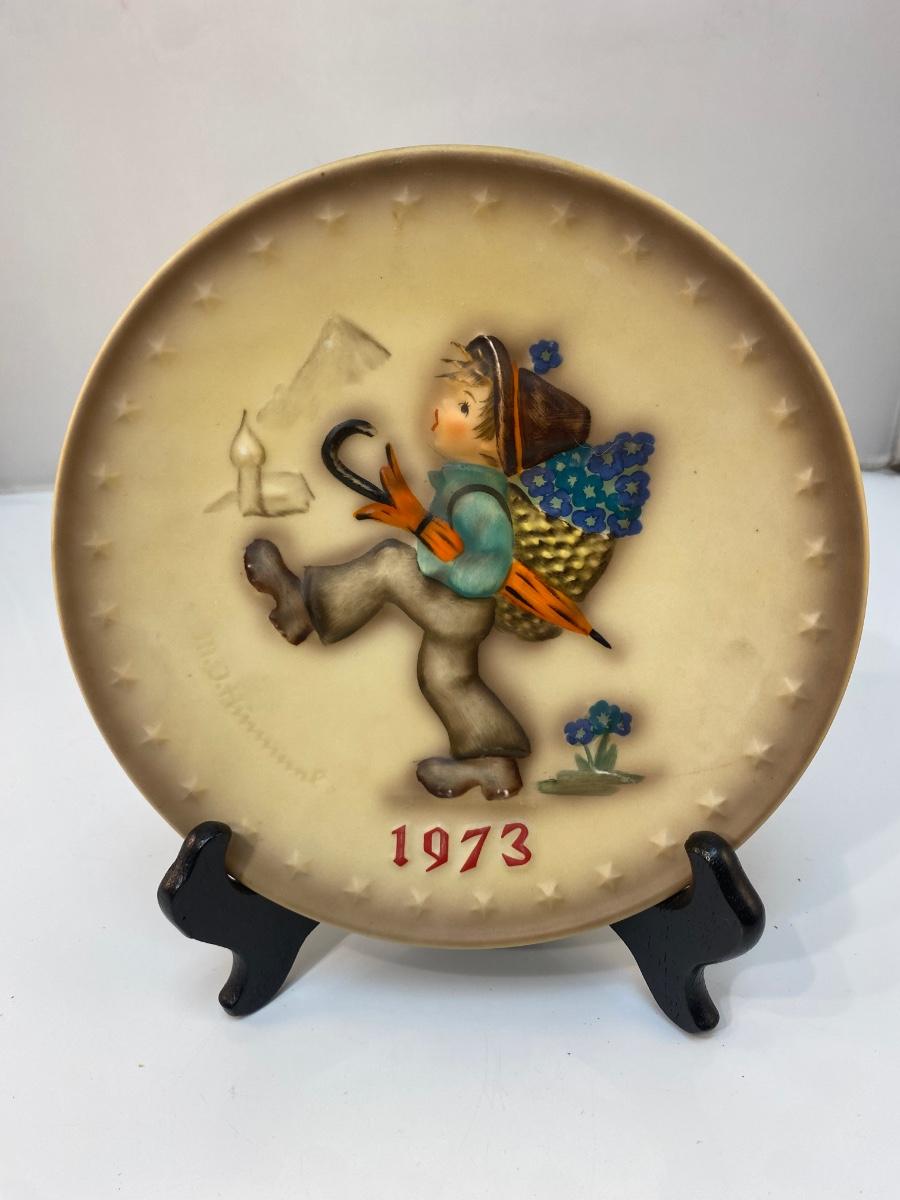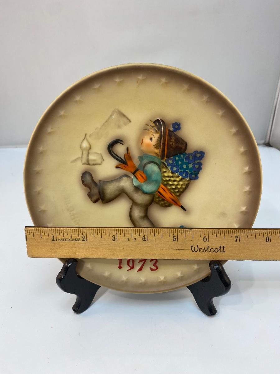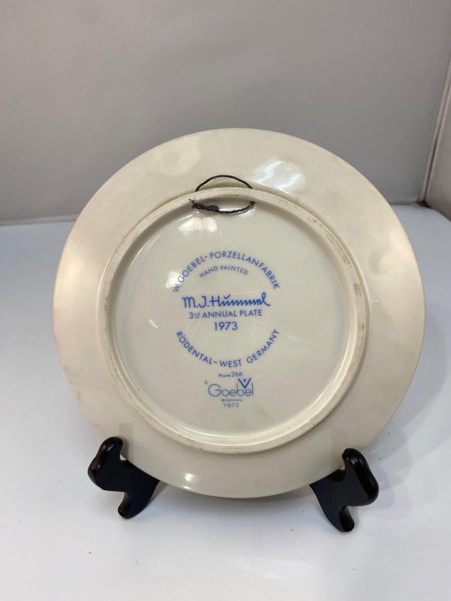 Vintage 1973 3rd Annual MJ Hummel Goebel W. Germany Collector Plate HUM266 Globe Trotter. In good displayable condition. Dusty from previous display and light crazing from age.