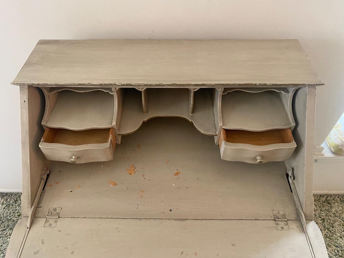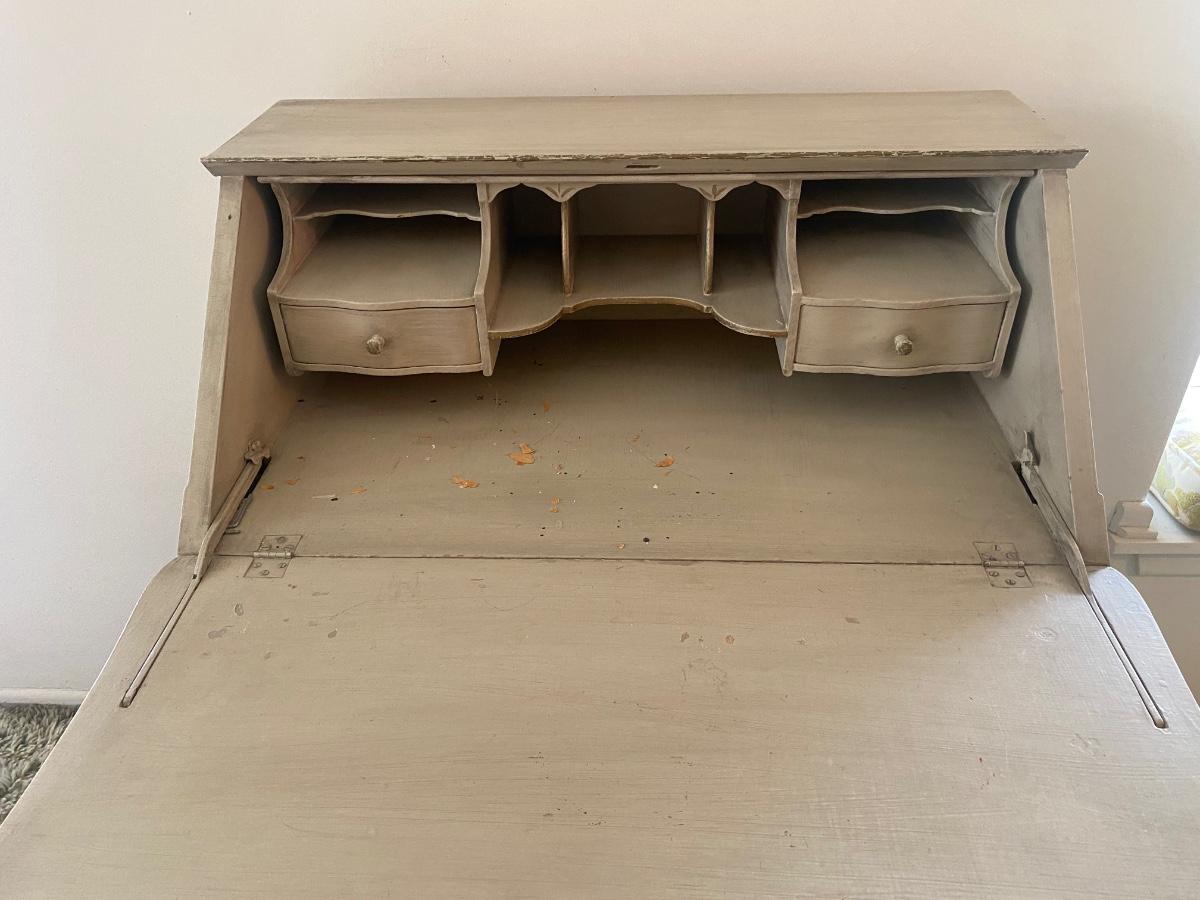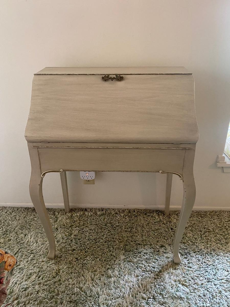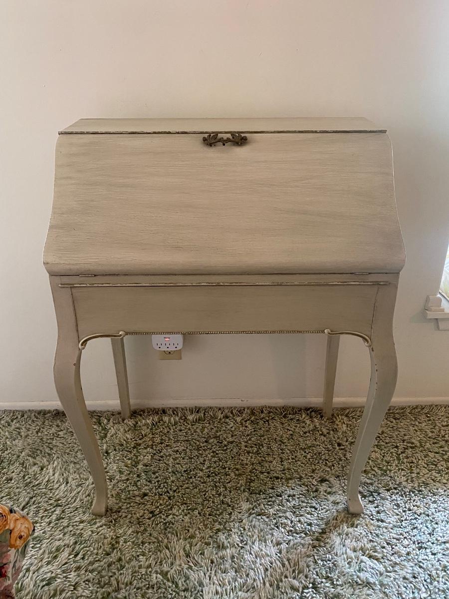 Vintage Whitewashed Finish French Provincial Style Drop Down Secretary Desk. In good vintage condition, unsure if this is the original finish or not.
