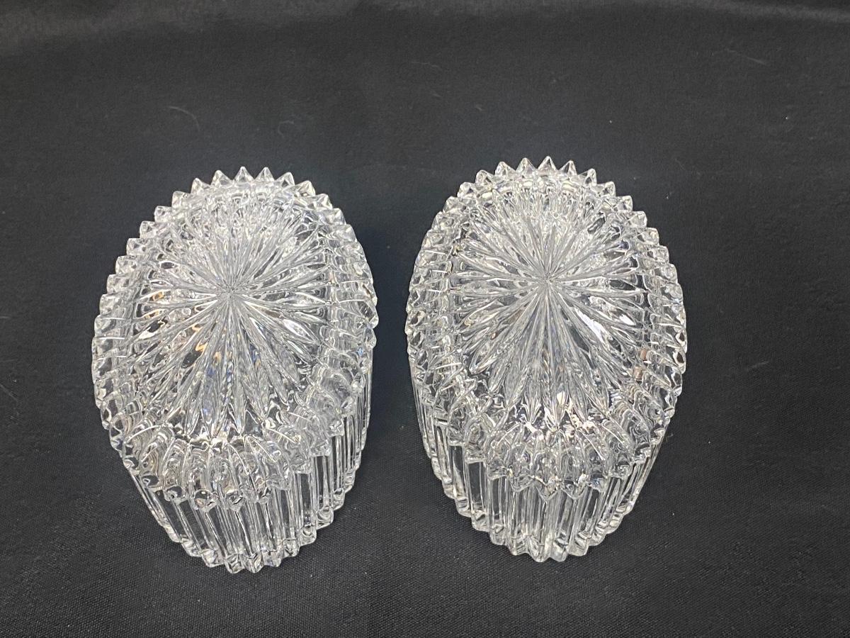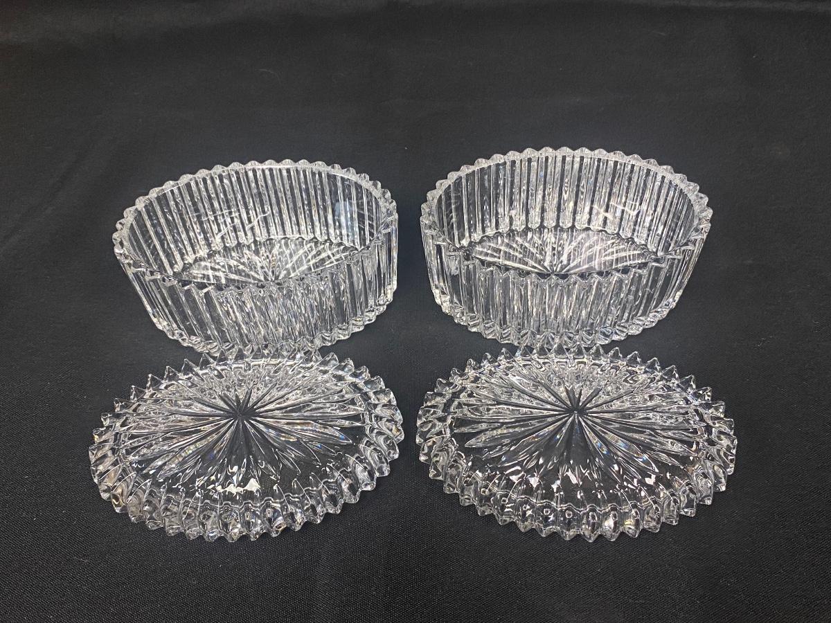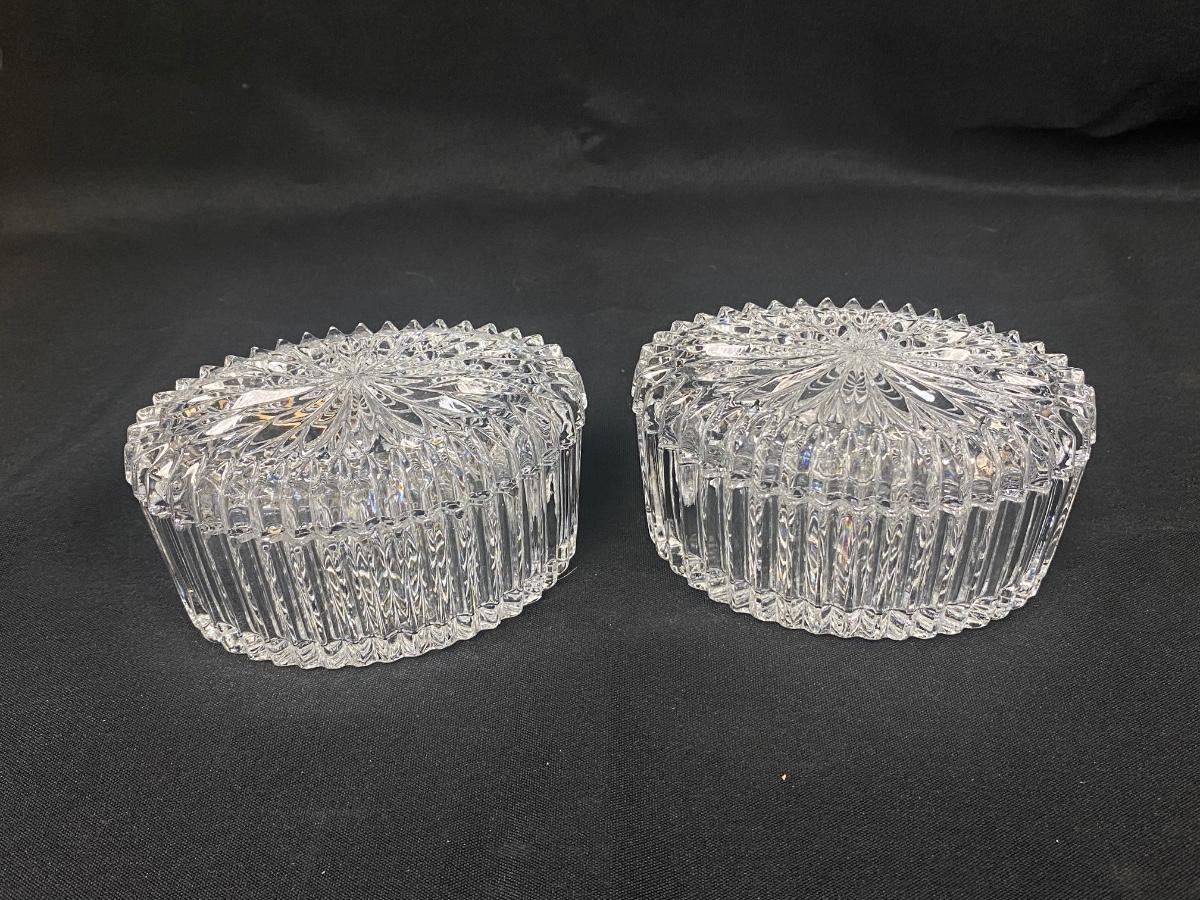Pair of Ribbed Lidded Crystal Glass Trinket Dishes Jewelry Boxes