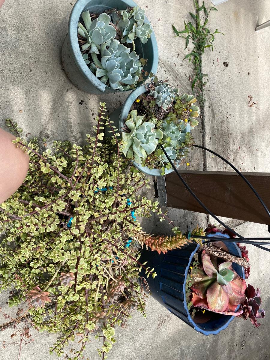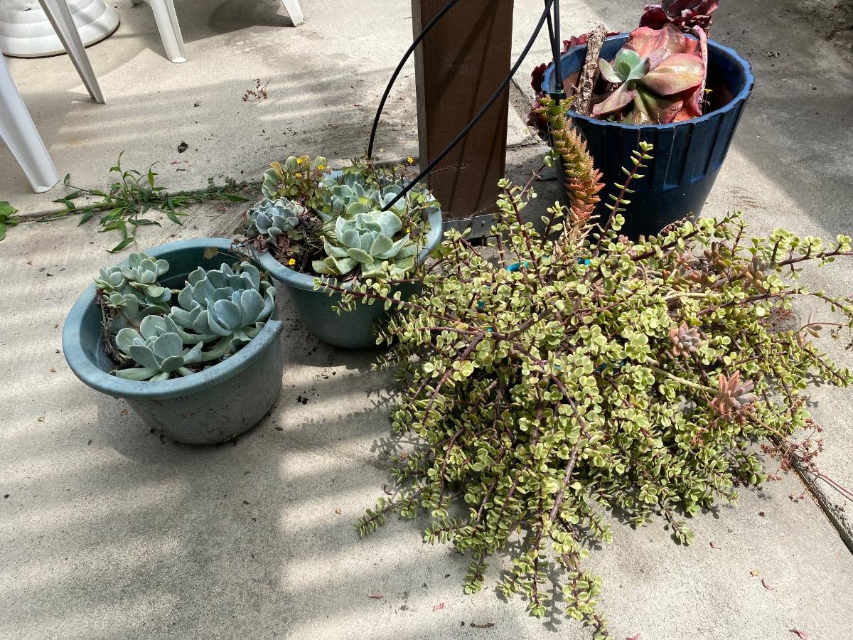 Live Succulent Plant Lot Plastic and Ceramic Planter Pots. 4 plants. PICK UP IN CYPRESS 6/3.