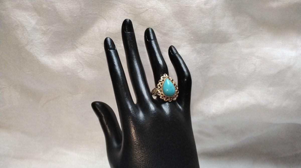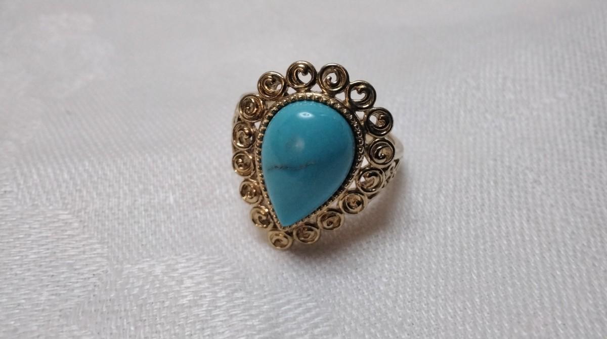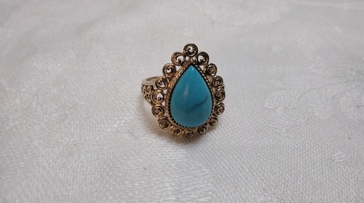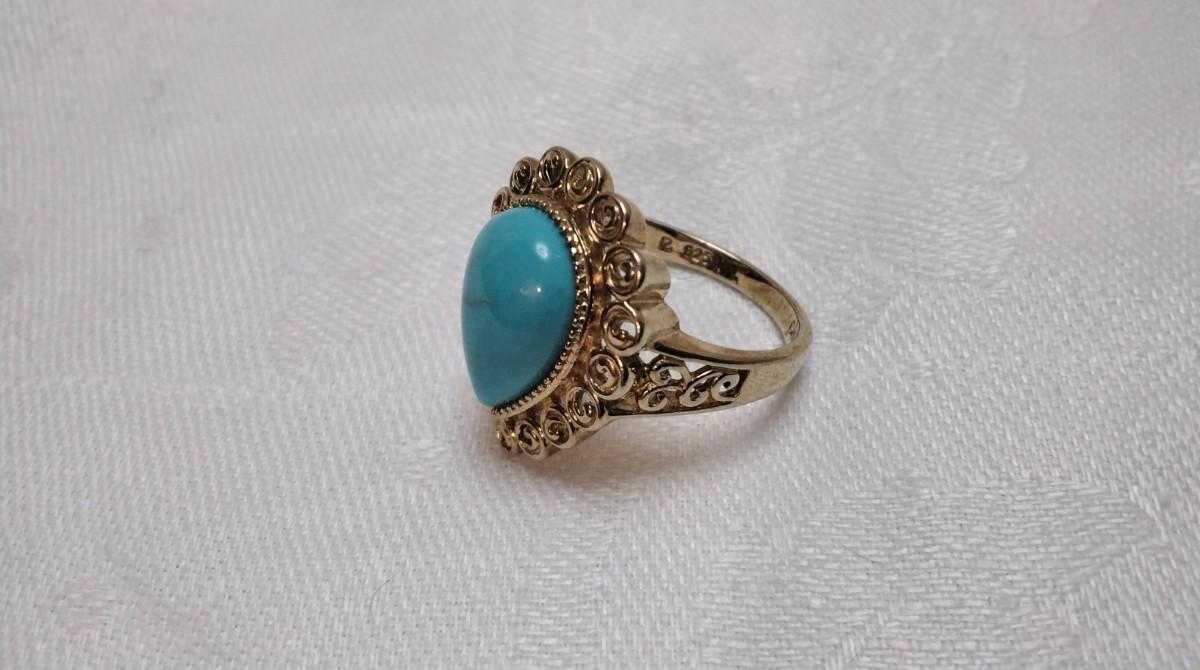 Vintage Ross Simons Turquoise Gold Vermeil Ring Size 8.5
