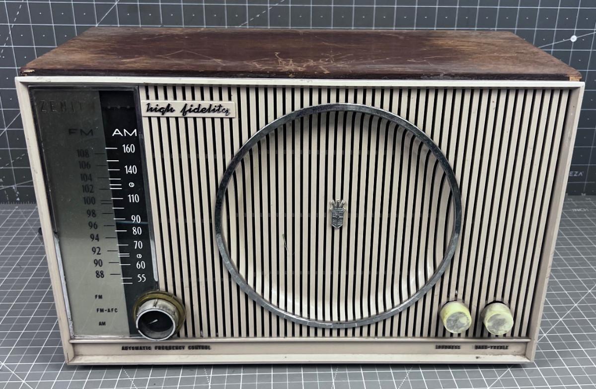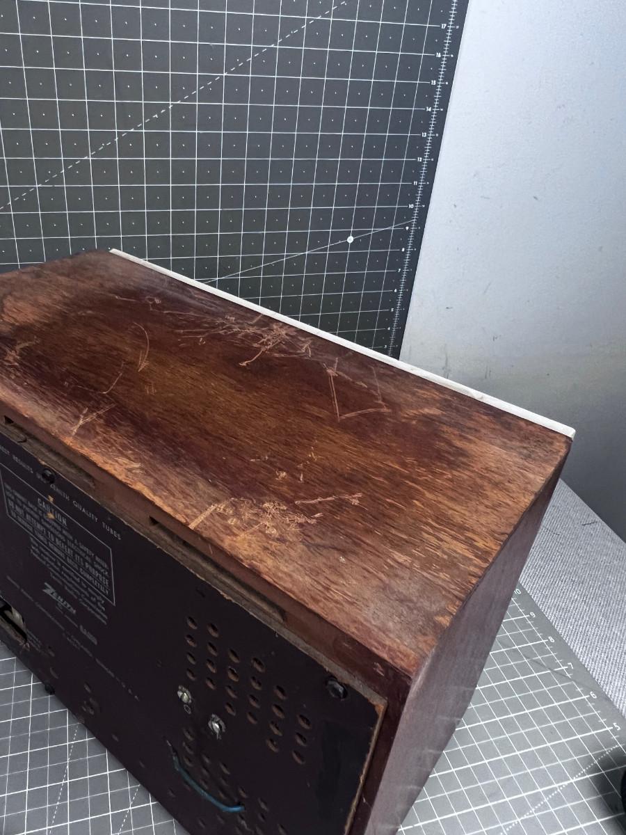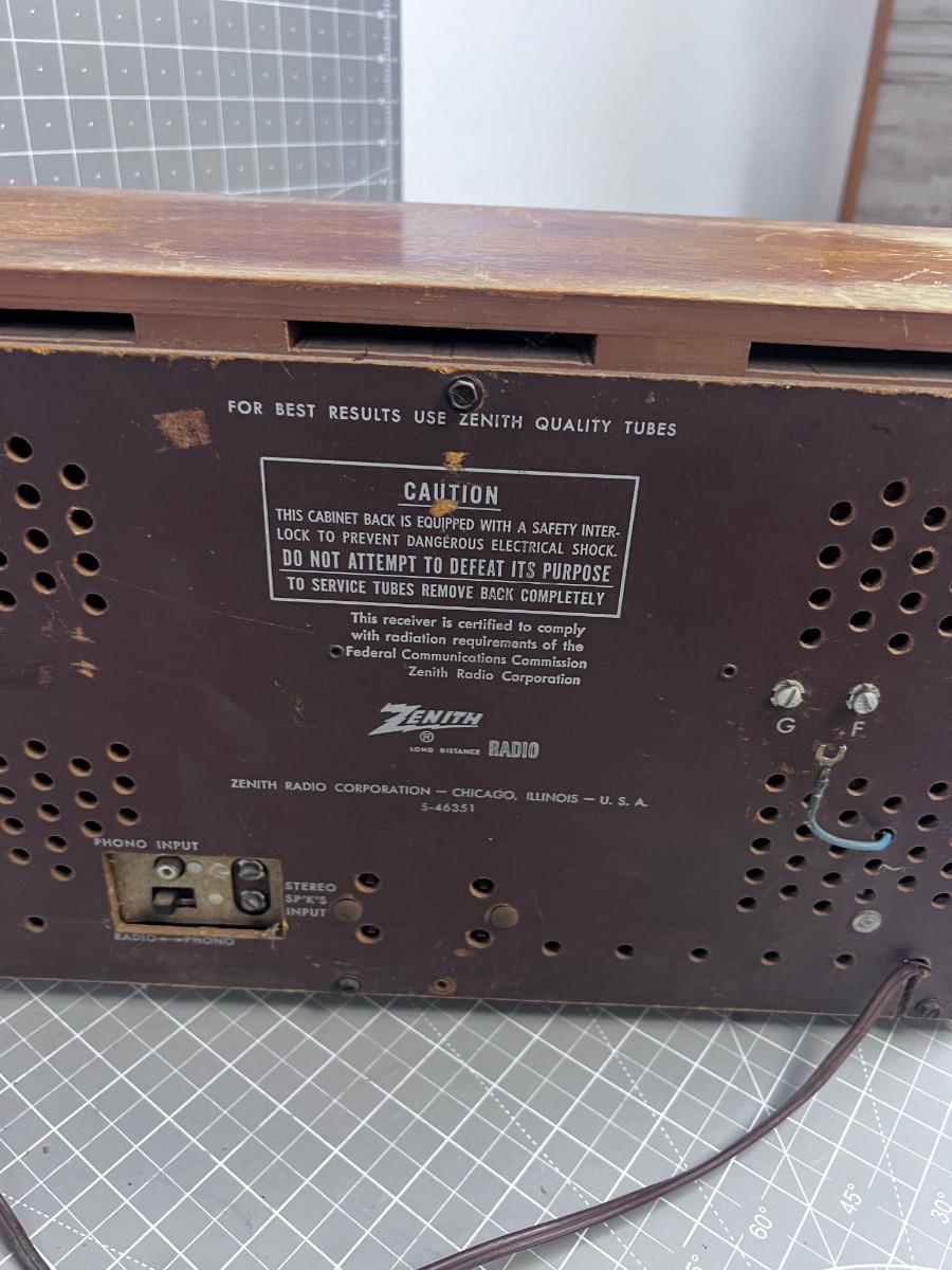 Needs a new cord. NOT Tested. Appears to be a TUBE Radio. The Wood is Dry due to being stored in a garage.