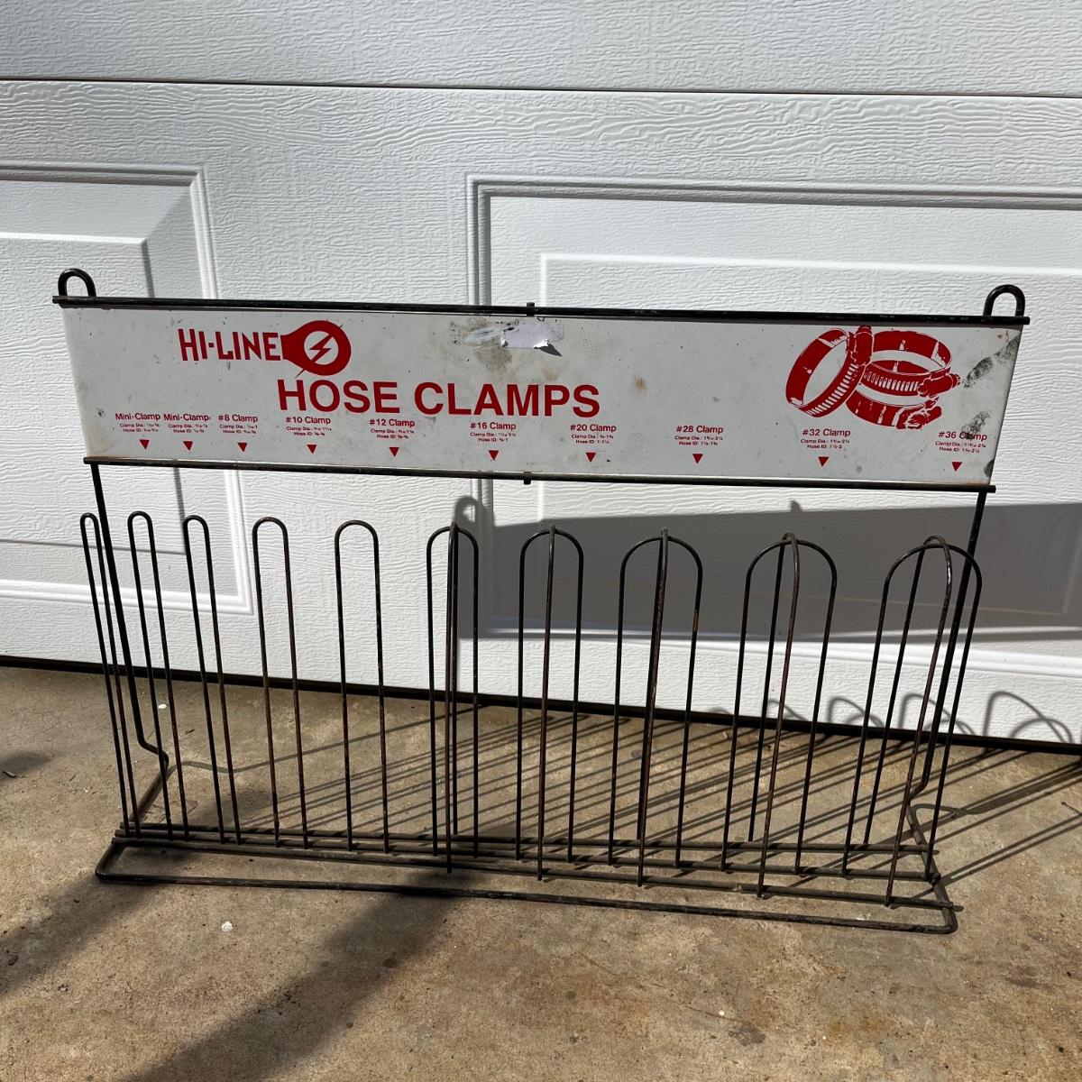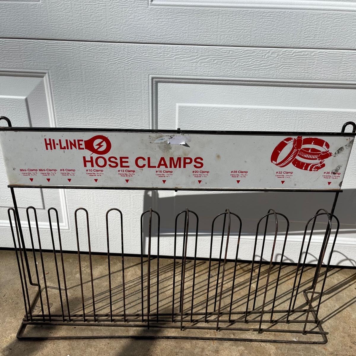 Lot includes a metal Hi Line Hose Clamp holder. Holder measures 5” x 23” x 16”.