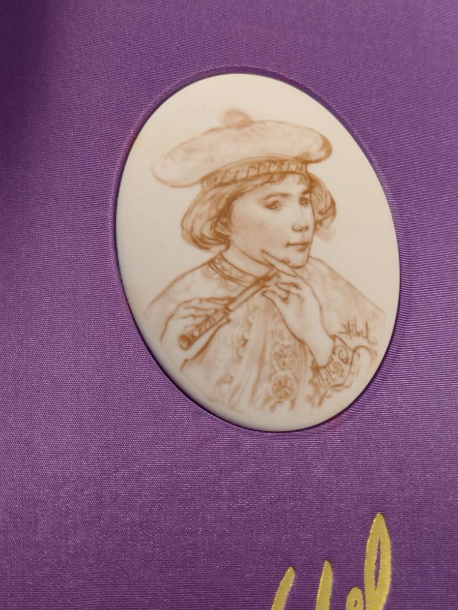 Hibel Allegro Ensemble- Plate and Limited Edition Book (1287/7500) Boxed Set. Book has bisque porcelain oval on cover.