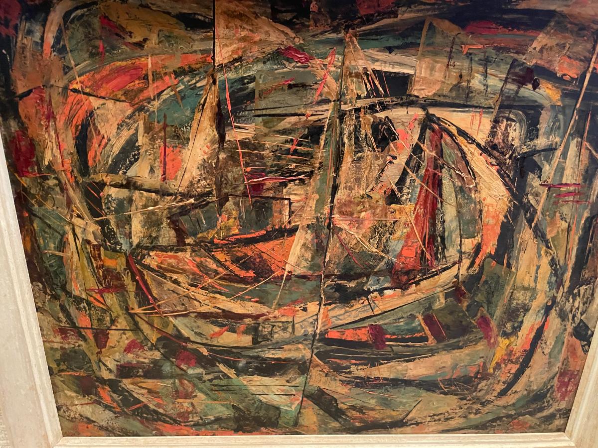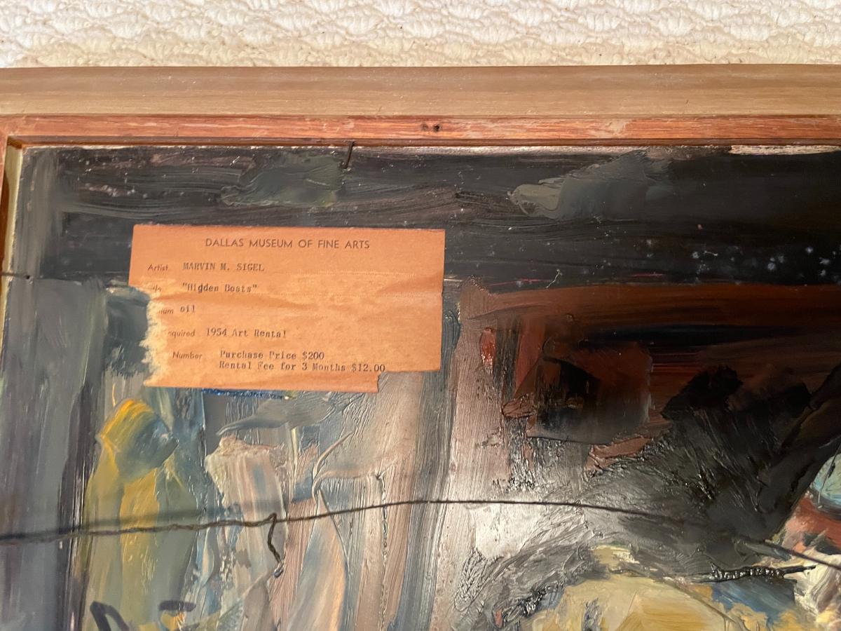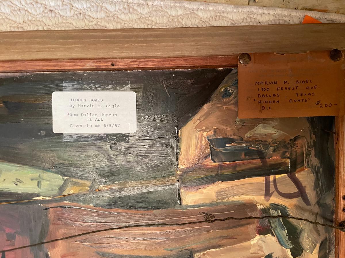 "Hidden Boats" Oil Painting Signed Marvin M. Sigel includes another painting behind frame by Sigel