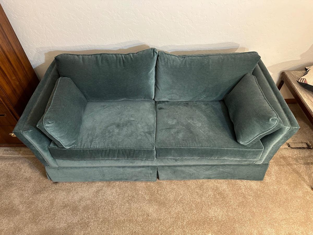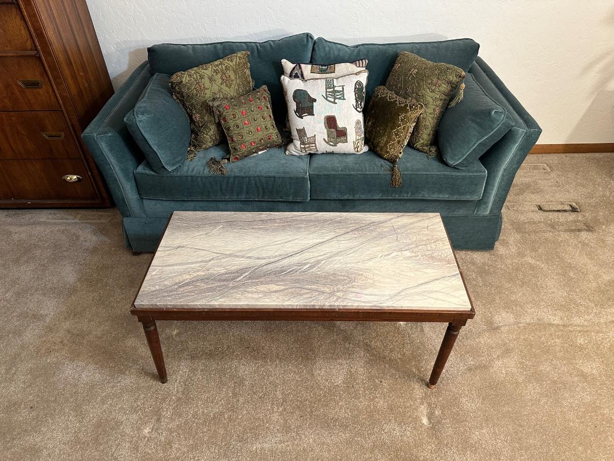 HIDE A BED LOVESEAT AND A SLATE TOP COFFEE TABLE