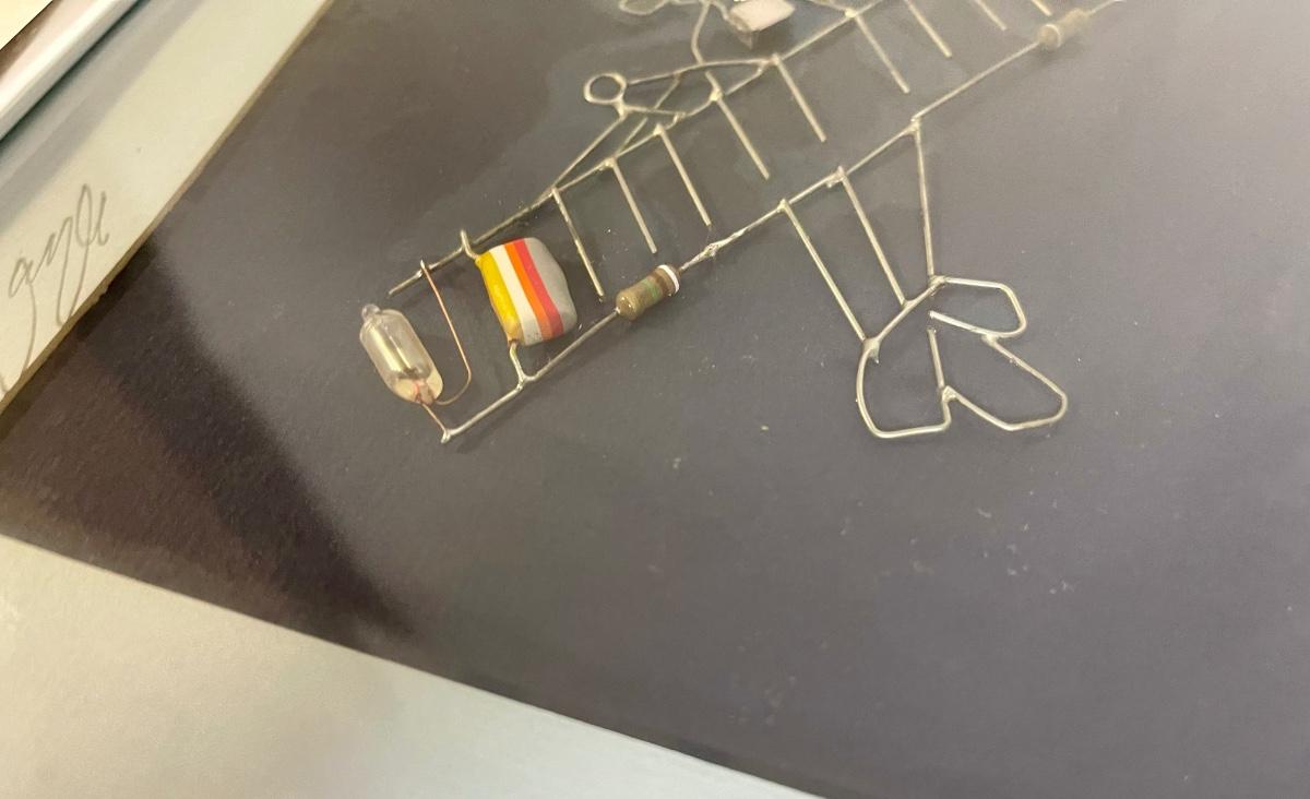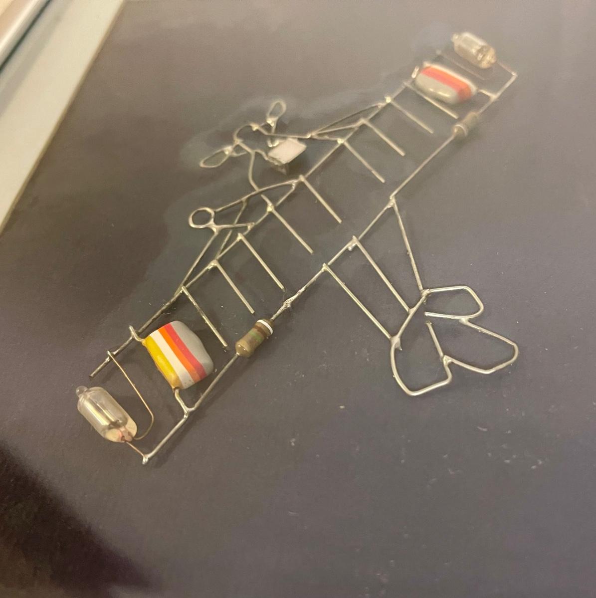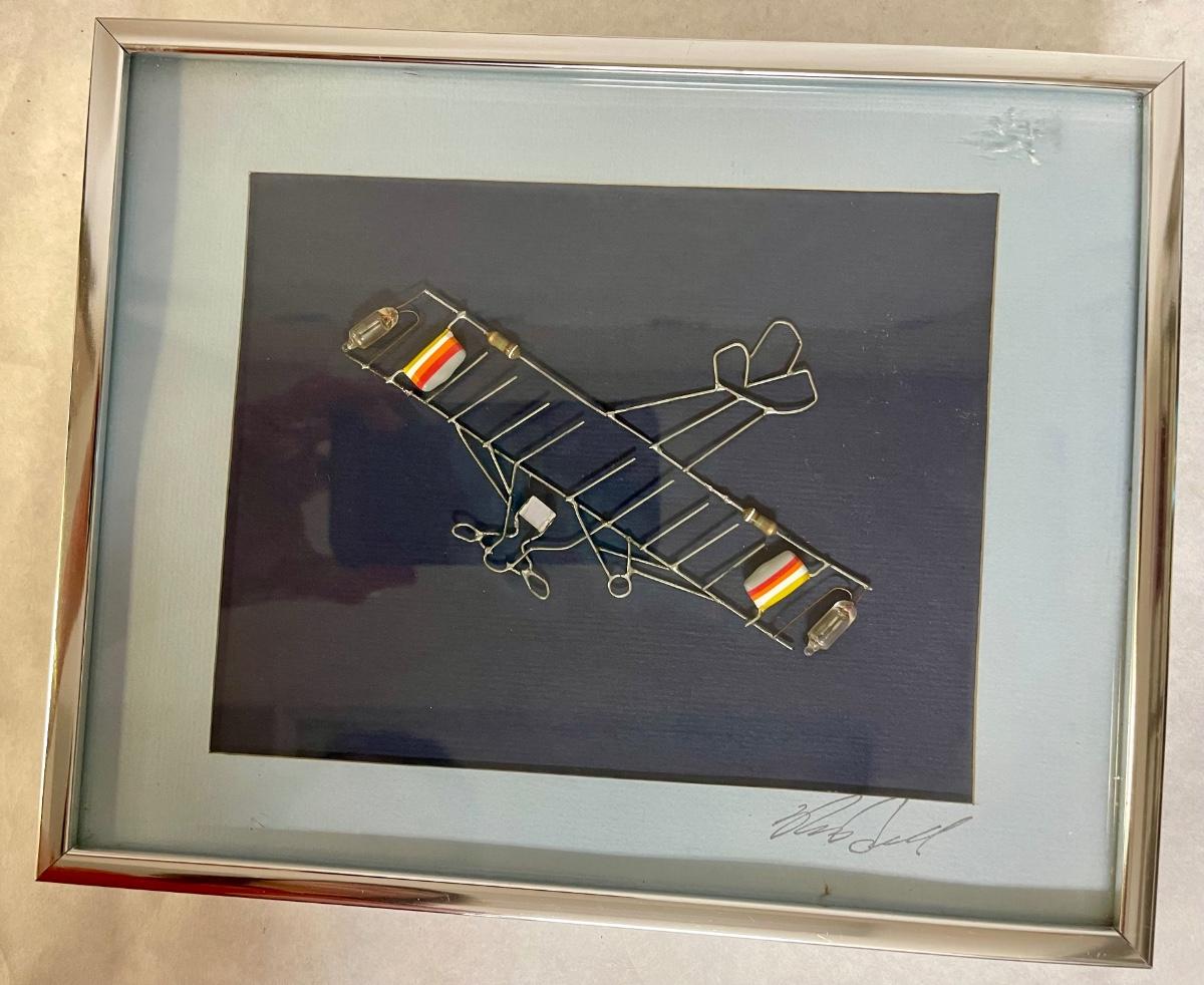 Framed Soldered Abstract Airplane with Battery Powered Lights