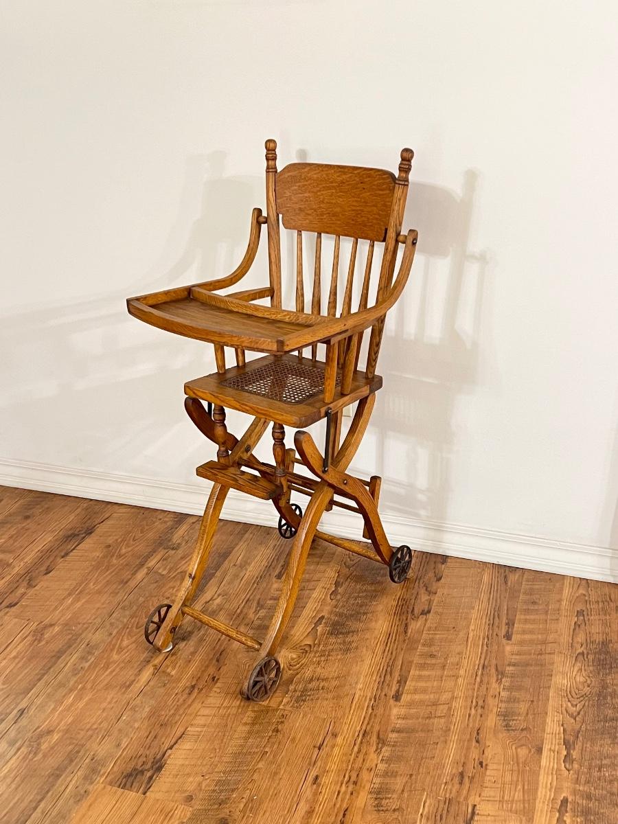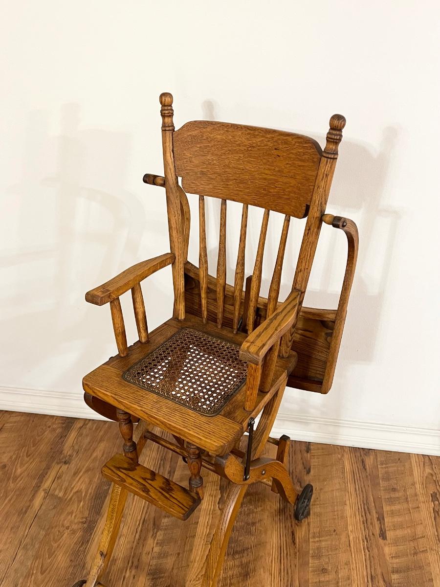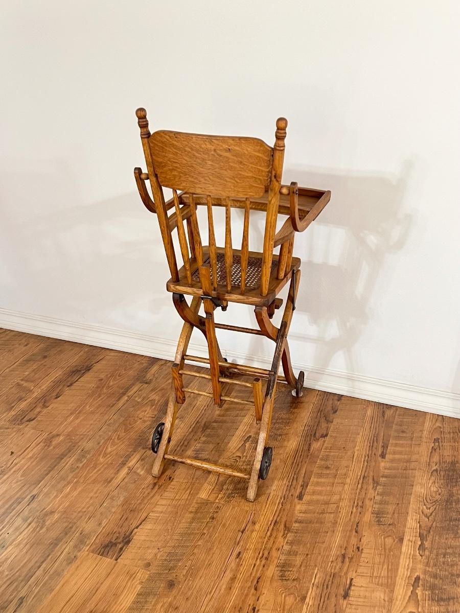 Vtg Oak Cane Seat High Chair ~ *Read Details