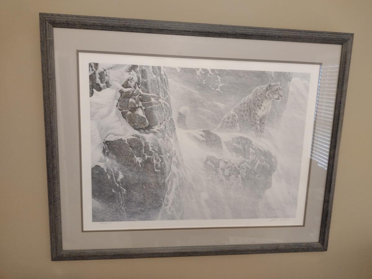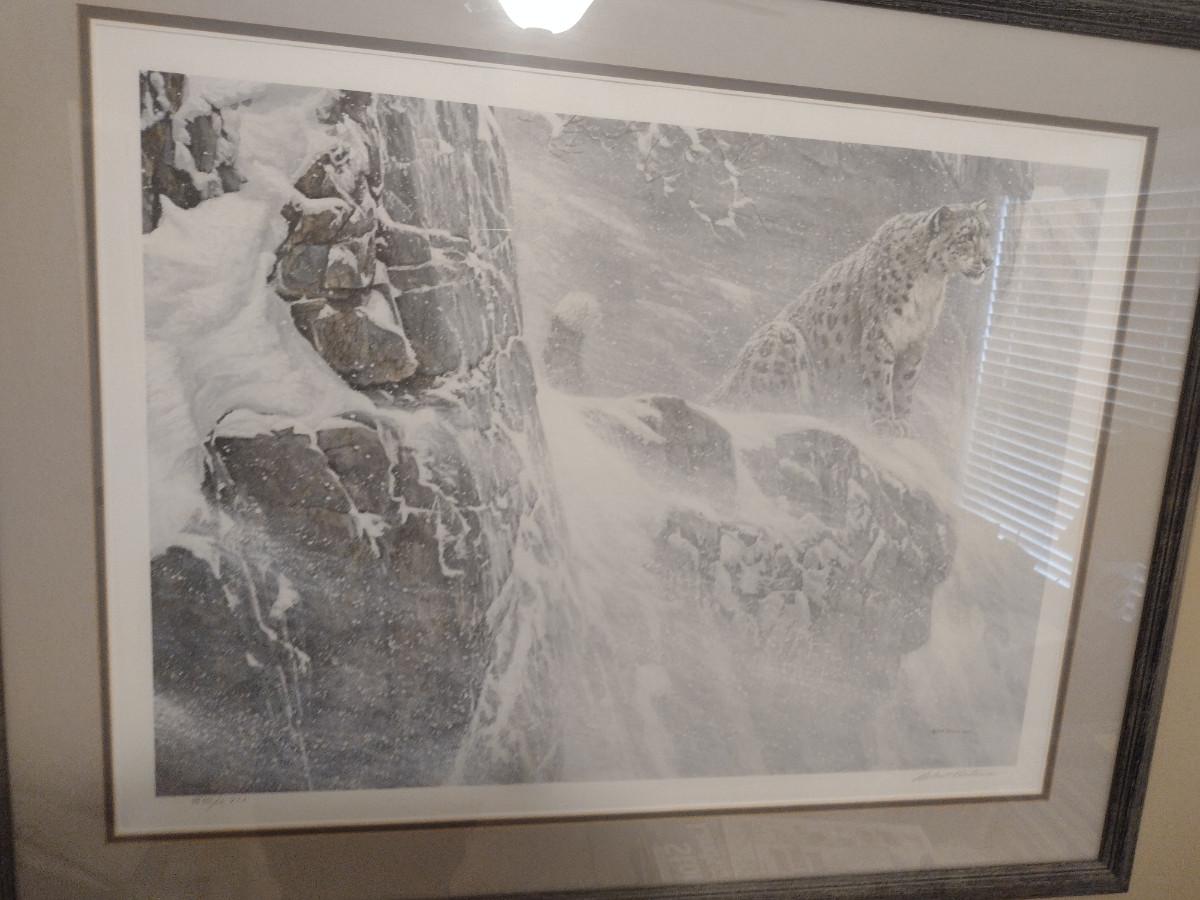 'High Kingdom- Snow Leopard' by Robert Bateman- Double Signed and Numbered- Framed Under Glass- Approx 30 1/2" x 39"
