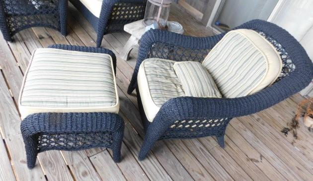 High Quality Faux Wicker Patio Chair and Ottoman with Sunbrella Cushions Choice Two