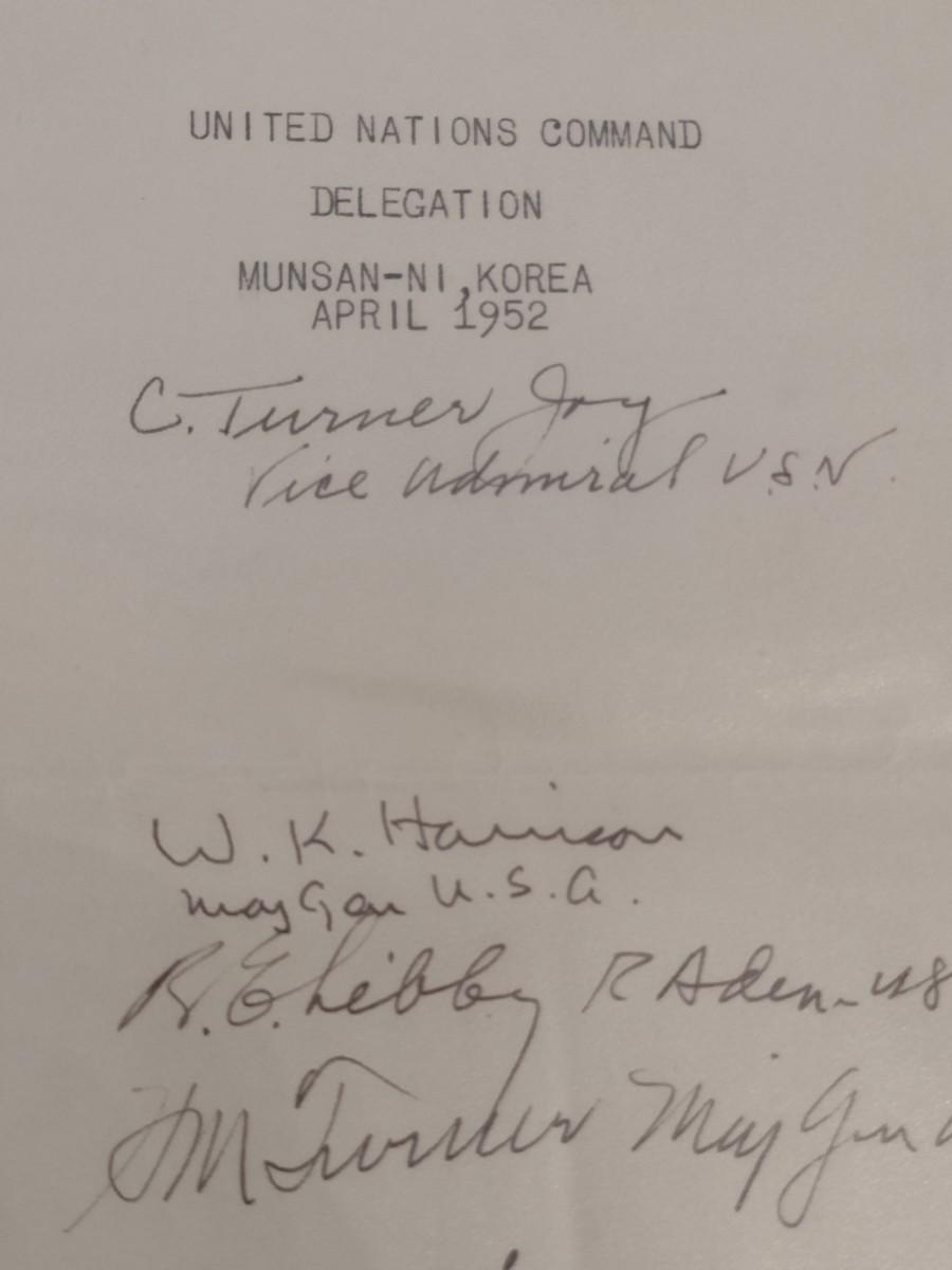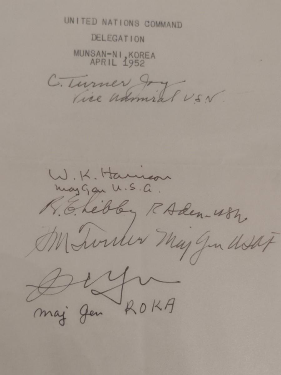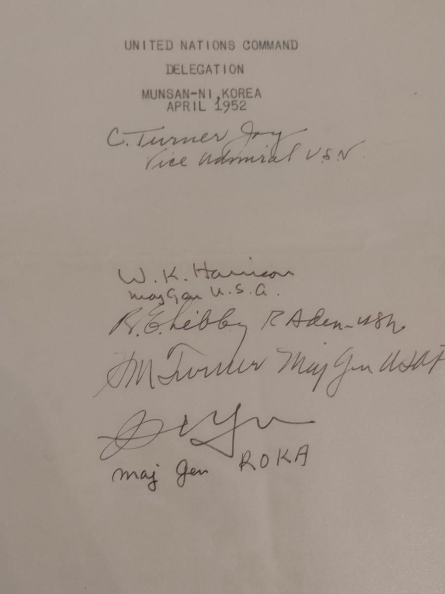 High Ranking Military Personnel Signatures of Attendees United Nations Command Delegation April 1952 Munsan-Ni, Korea