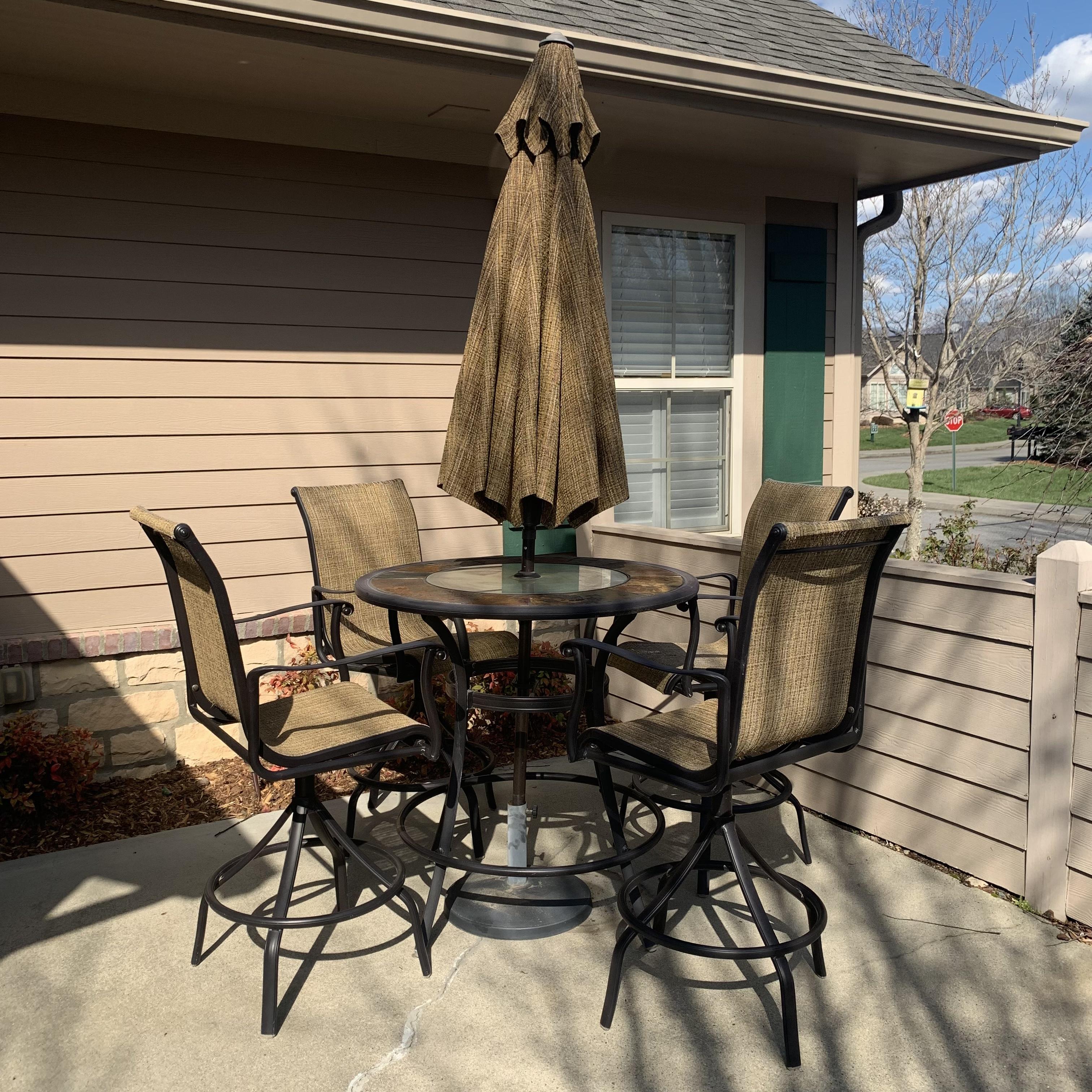 High Top Patio Table with Umbrella & Chairs (P-HS)