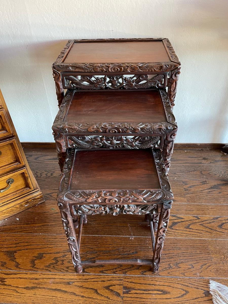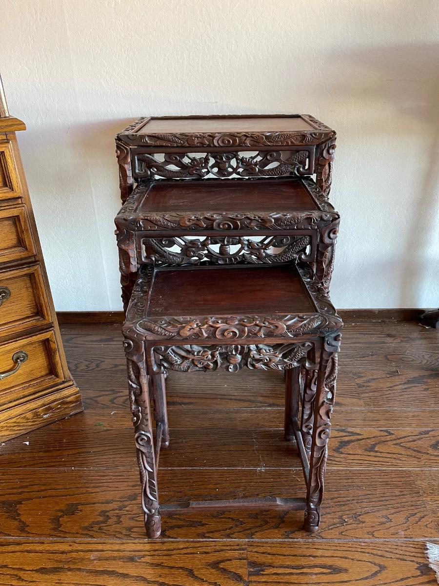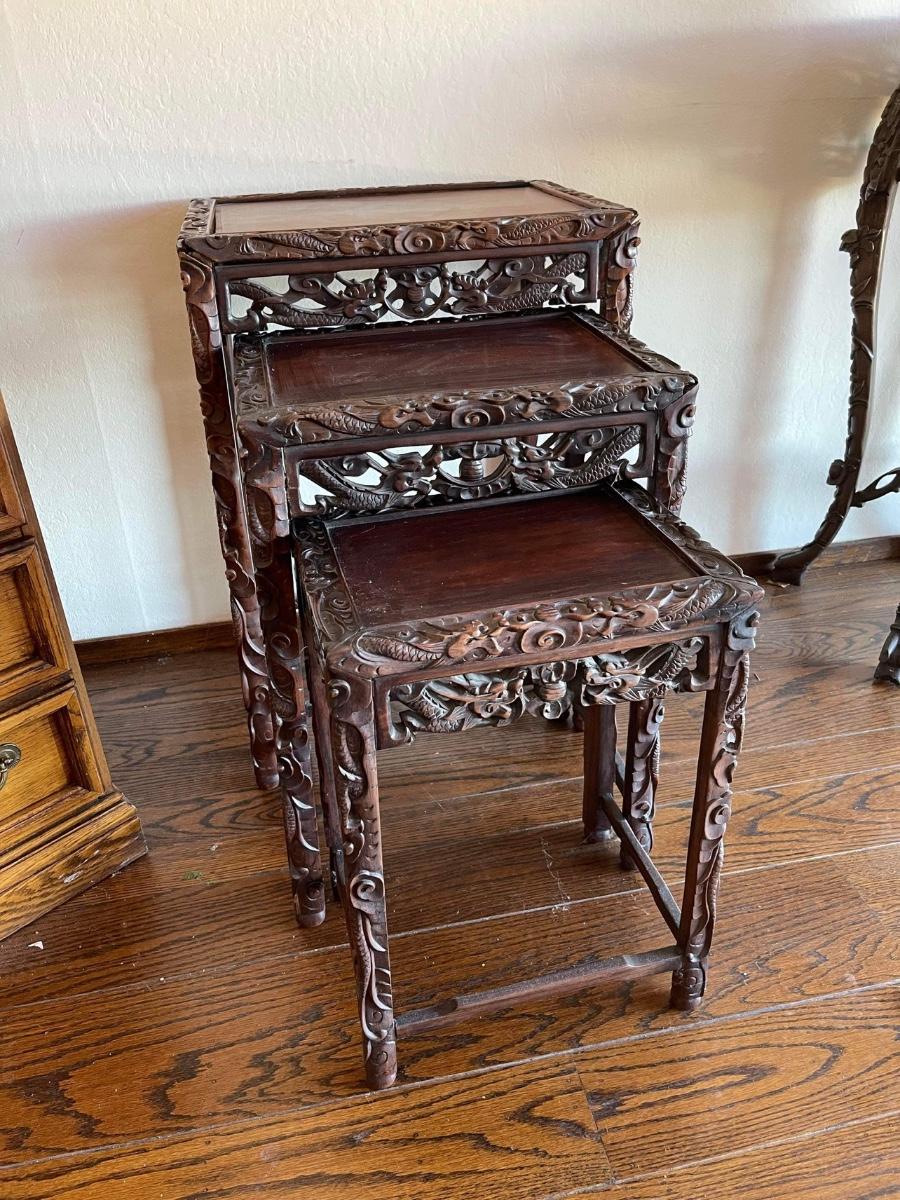 Highly. Carved Chinese nesting tables