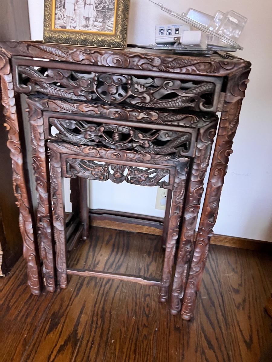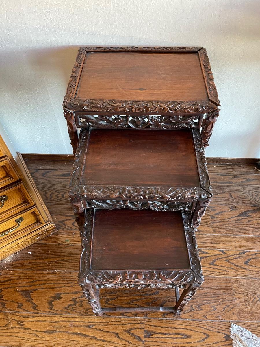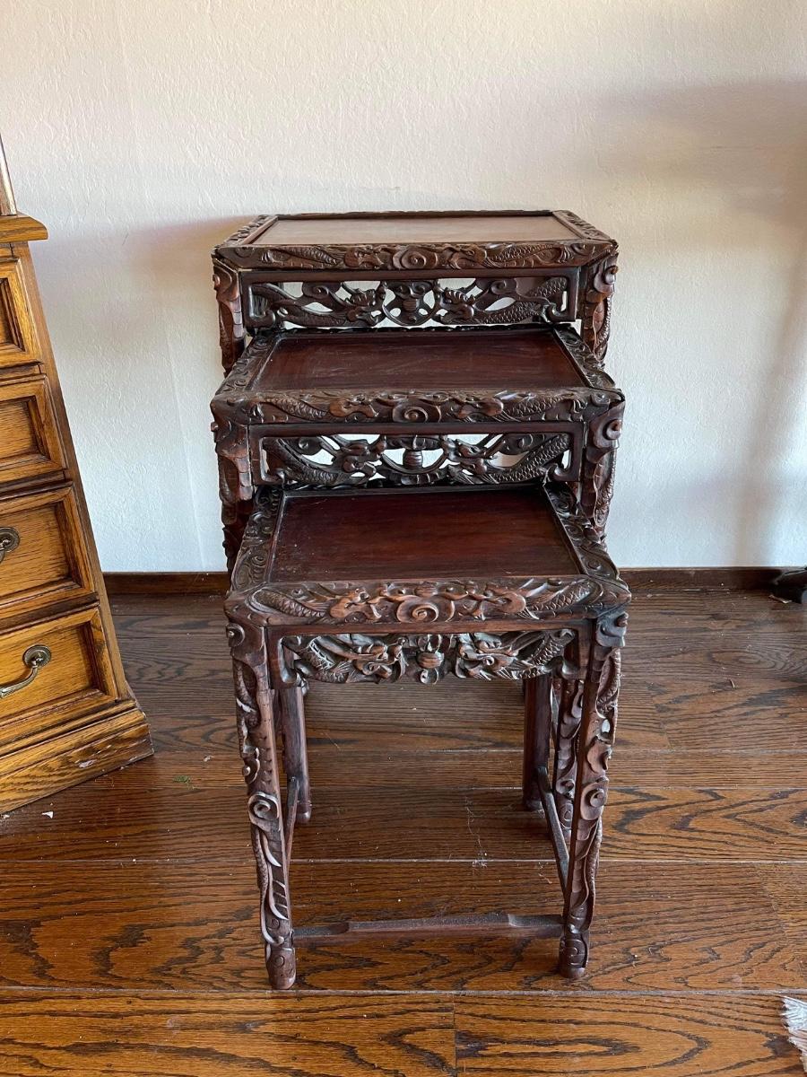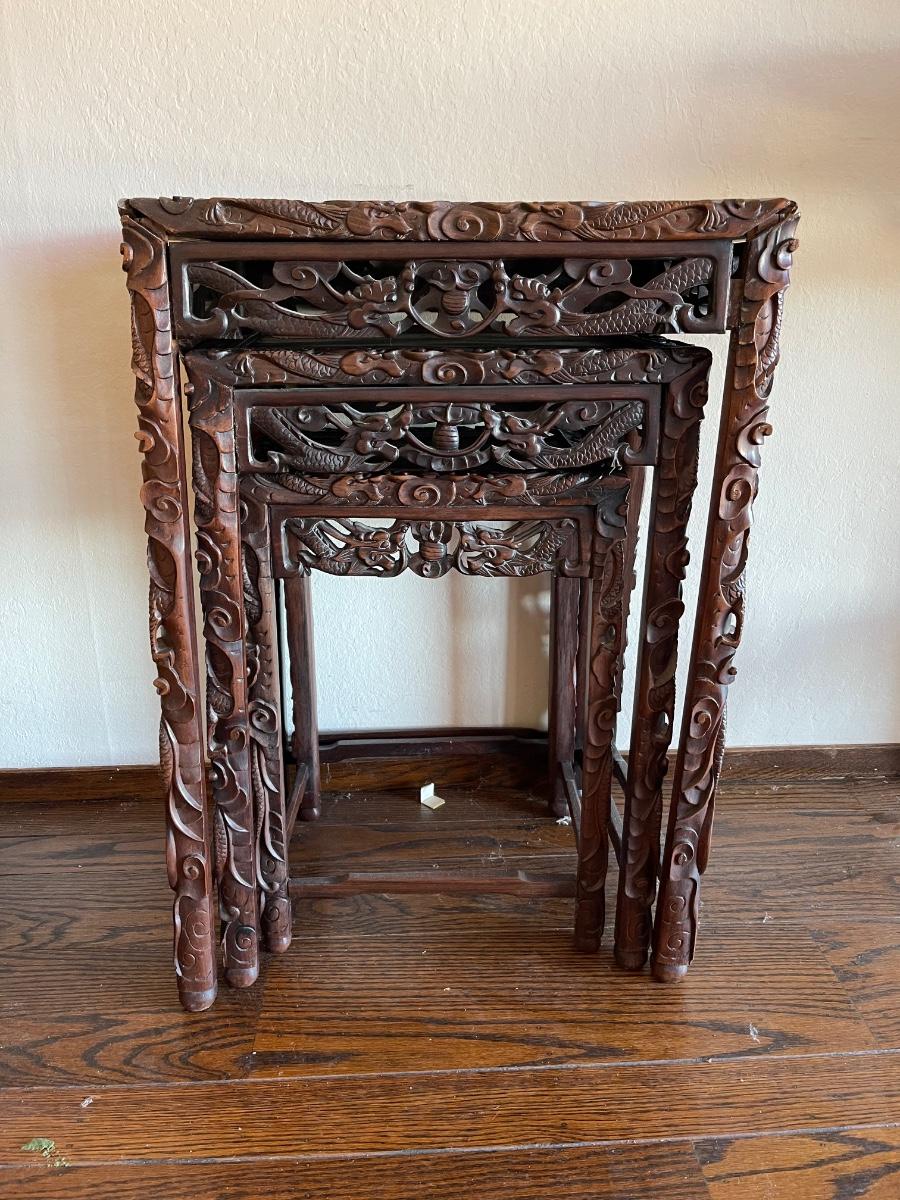 Highly. Carved Chinese nesting tables