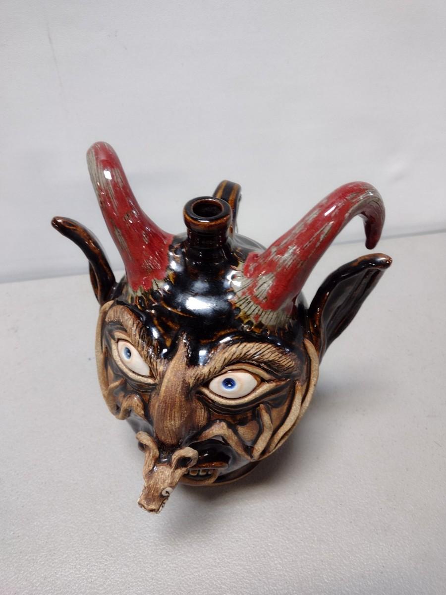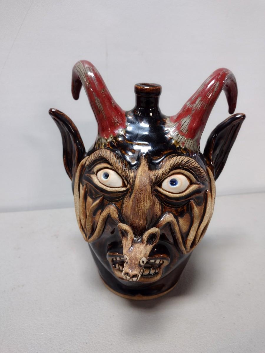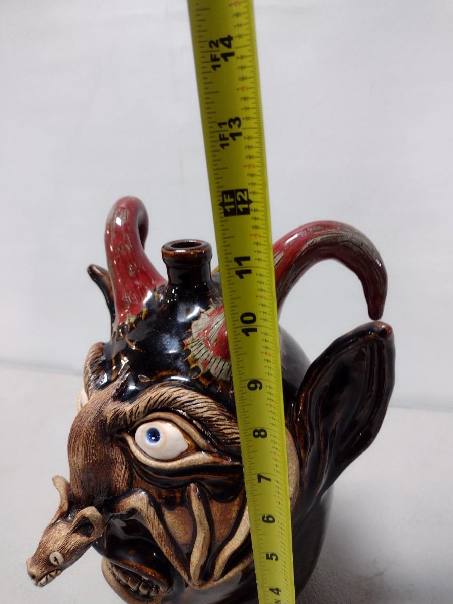 Highly Detailed Red Horn Devil Face Jug Signed by Artist Karen LaBarga #807