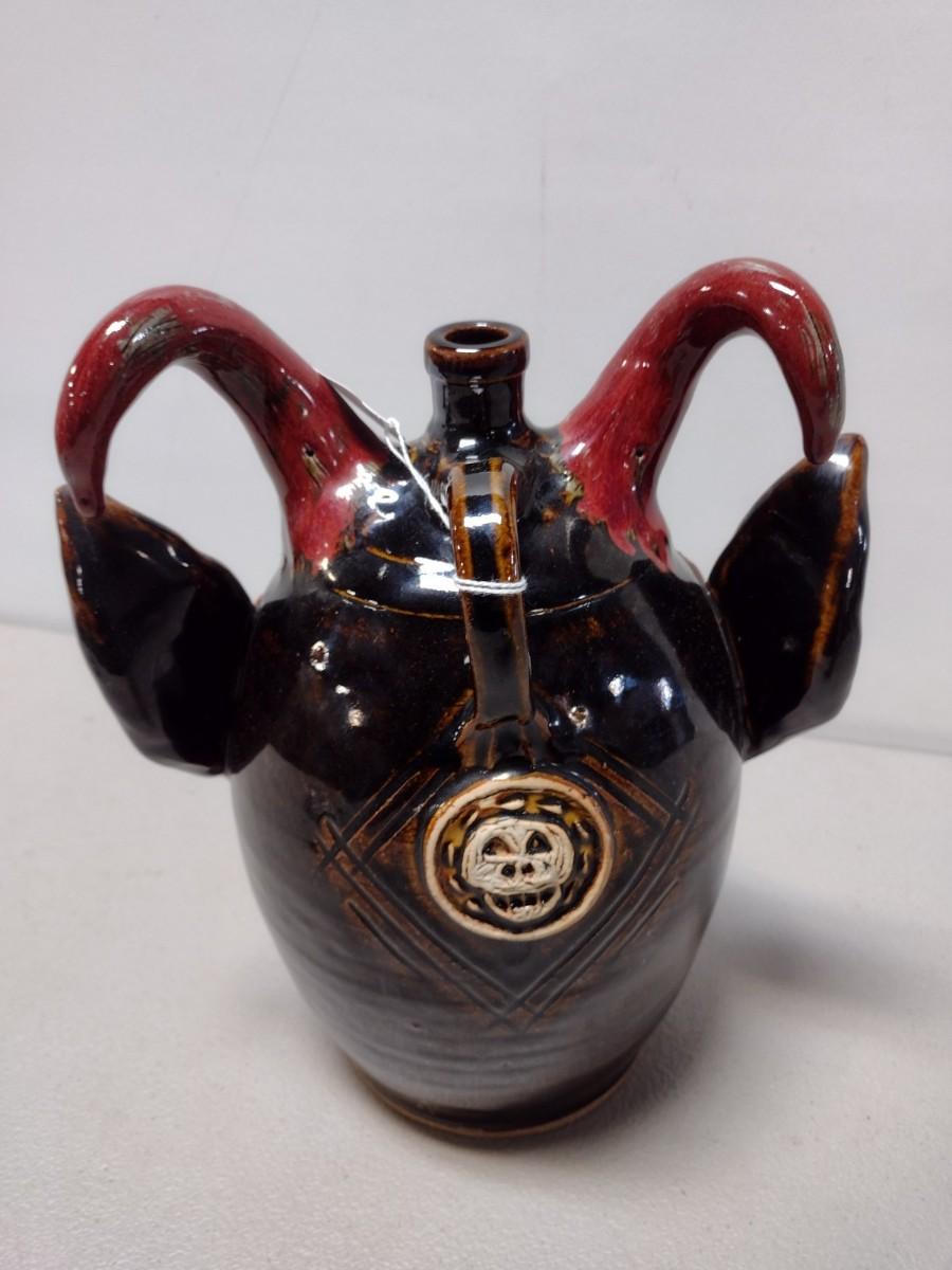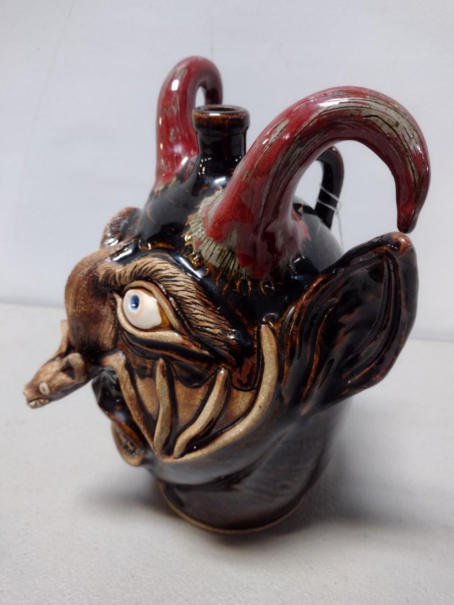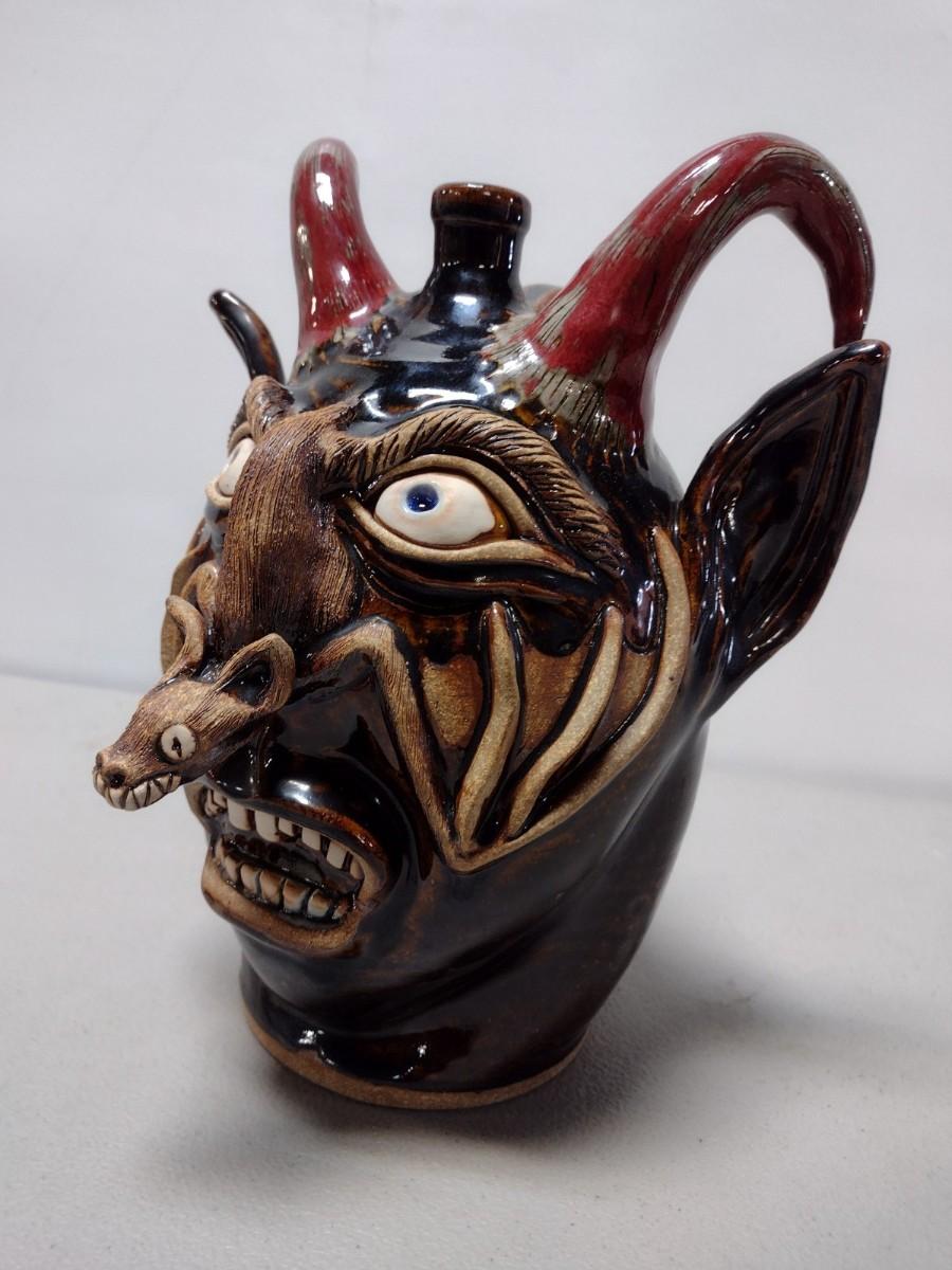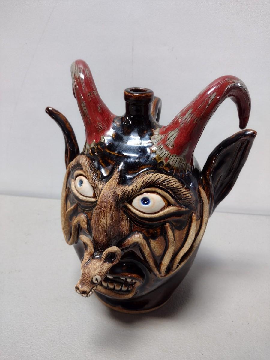 Highly Detailed Red Horn Devil Face Jug Signed by Artist Karen LaBarga #807