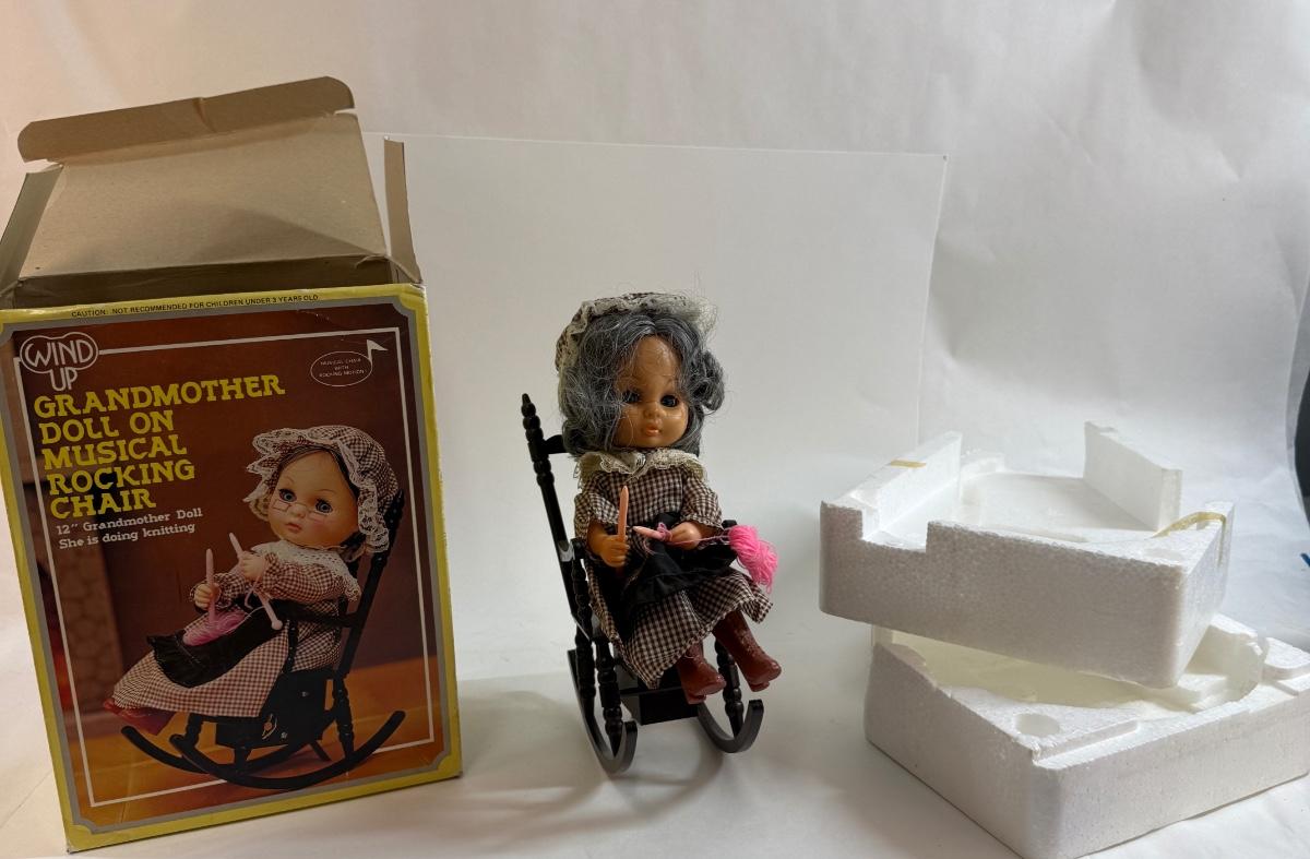 Wind-up Grandmother Doll on Musical Rocking Chair