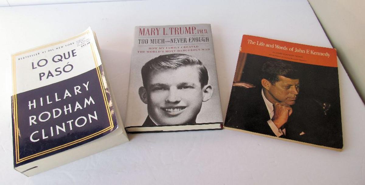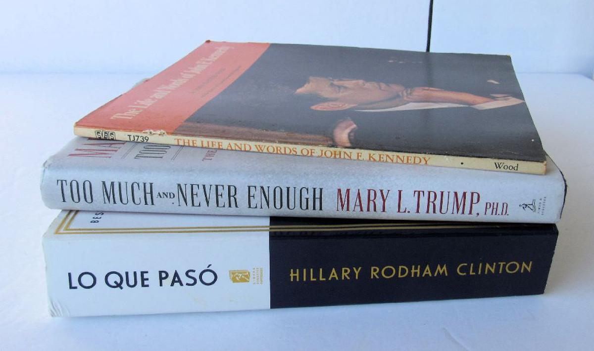 Hillary Clinton Soft Cover (in Spanish), Too Much - Never Enough Hard Cover2020, Life and Times of JFK, 1965
