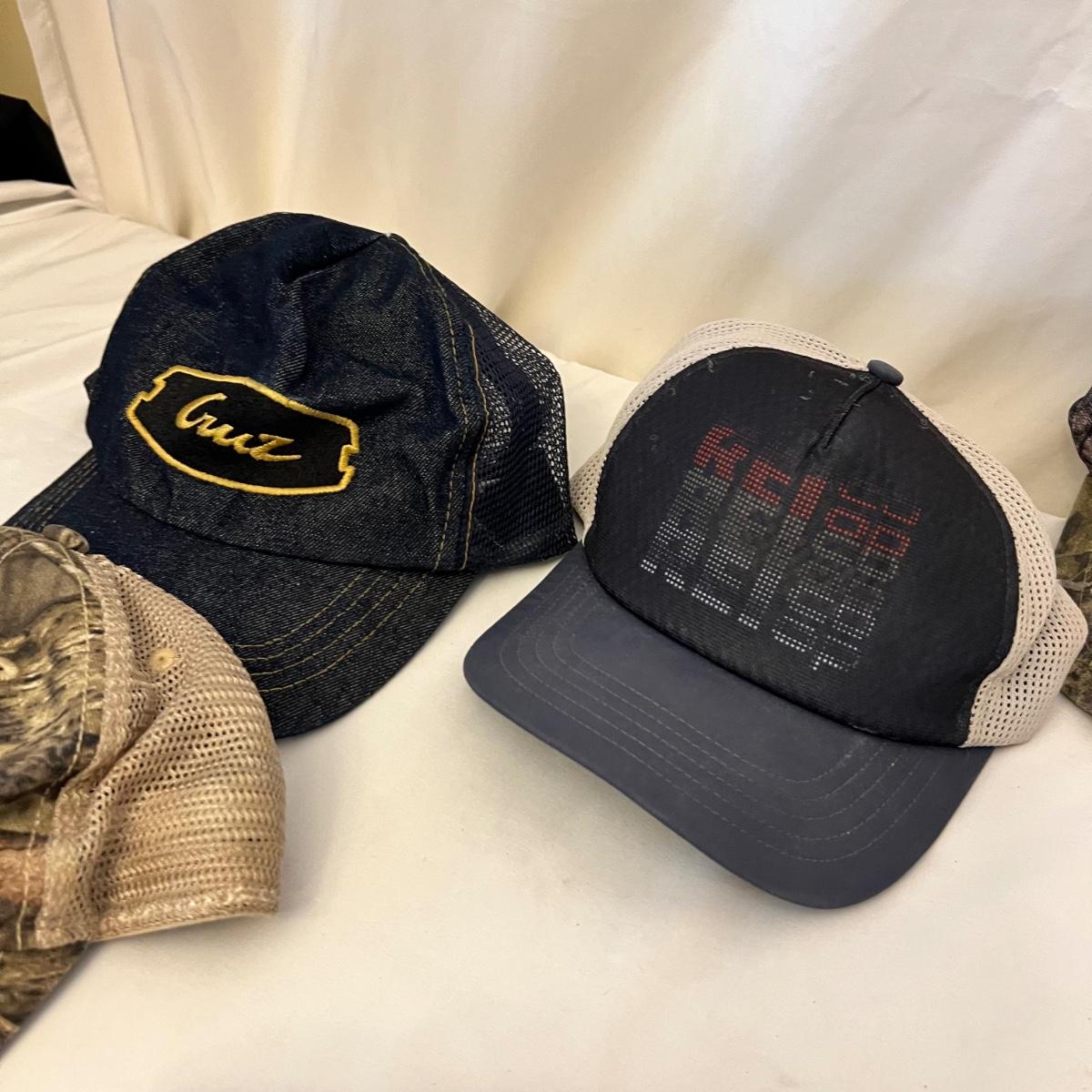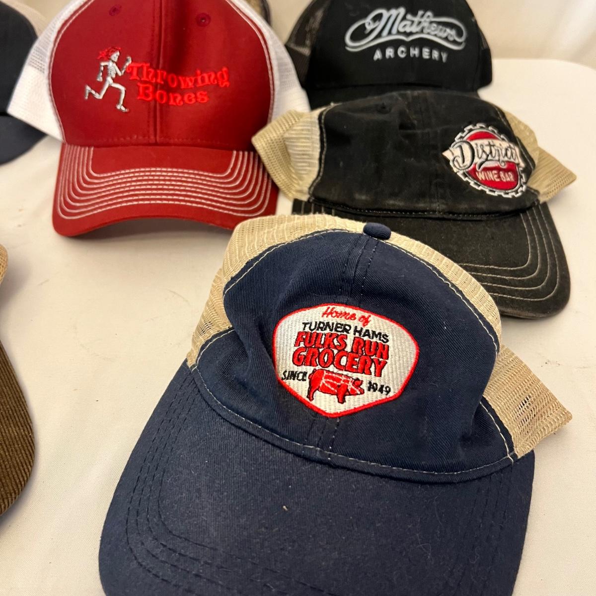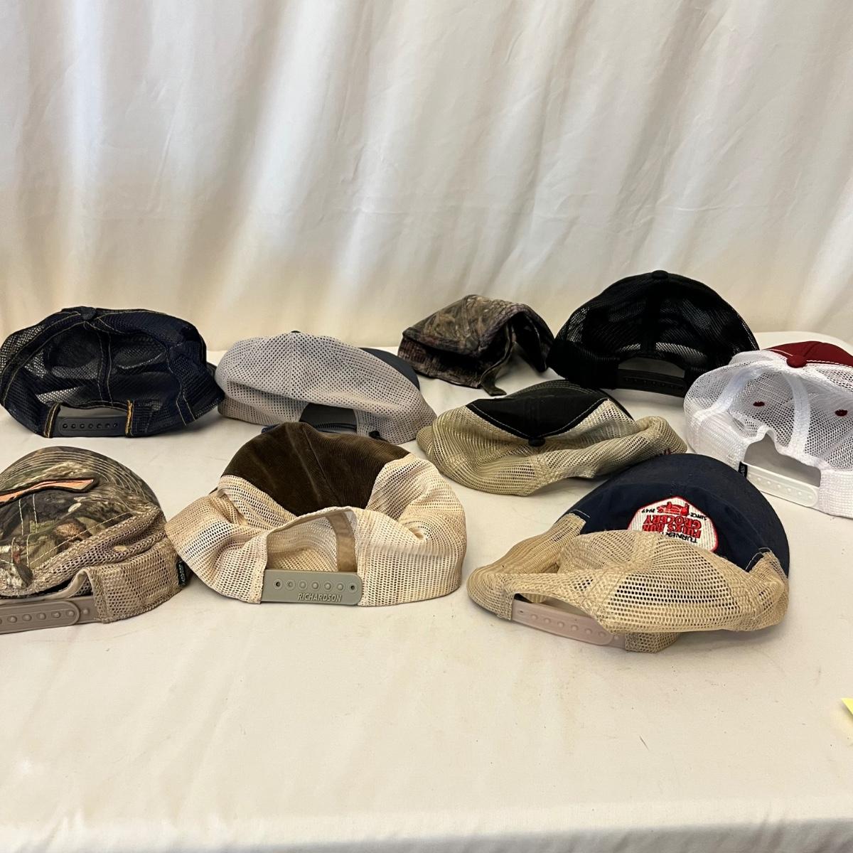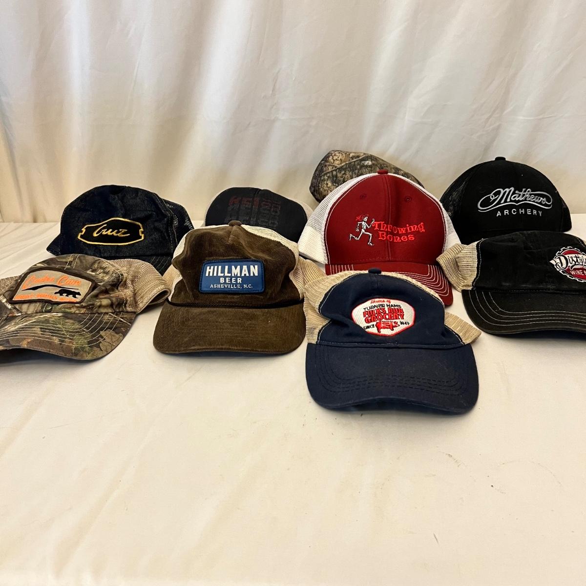 Nine baseball caps are all adjustable in size. See photos for full inventory.