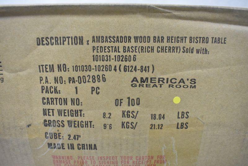 Hillsdale Furniture Ambassador Wood Bar Height Bistro Table with Pedestal Base. CENTER POST ONLY. No table top, no pedestal bottom. Bolt on top is bent. Project piece