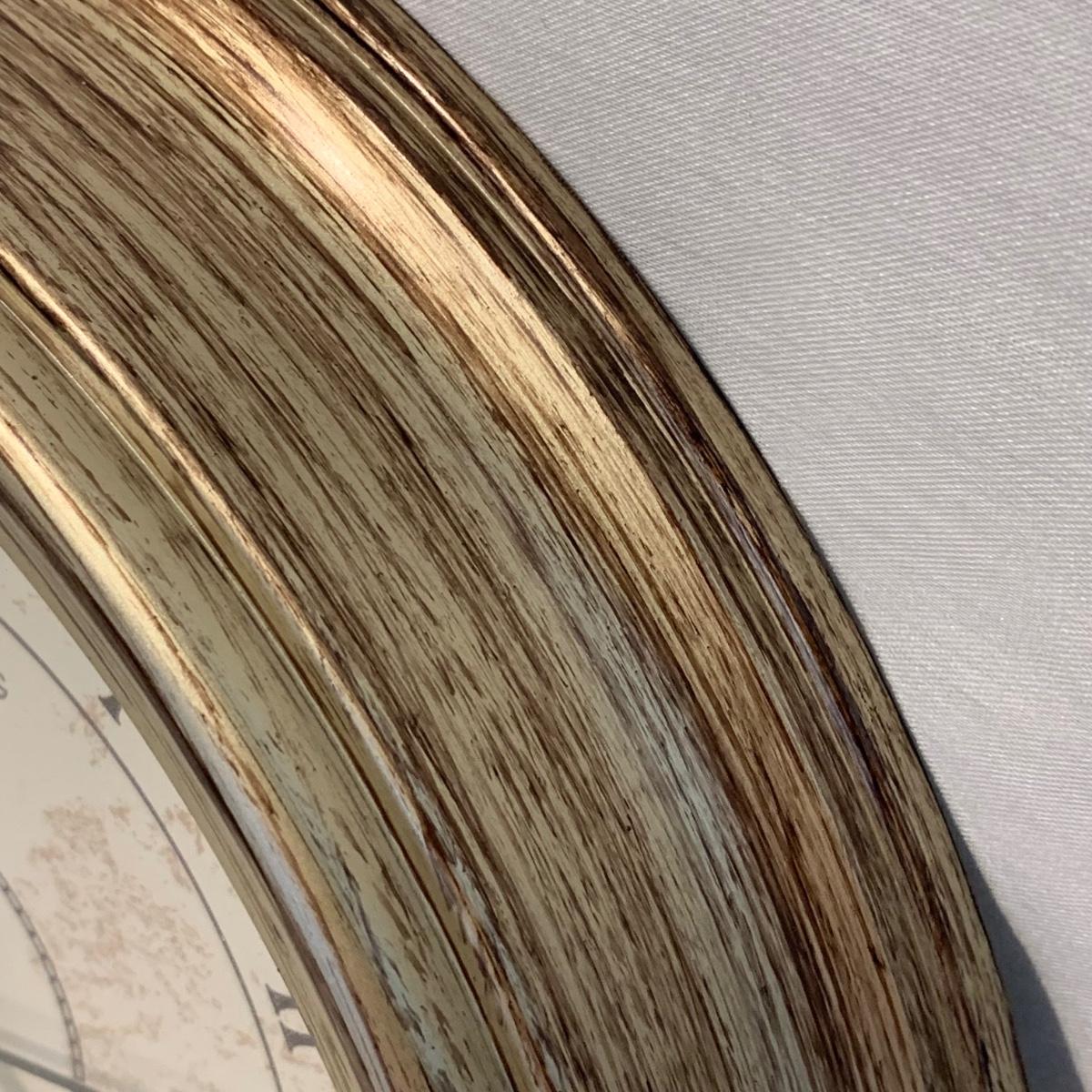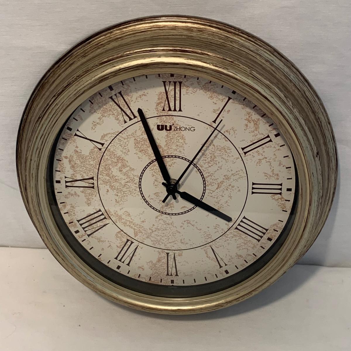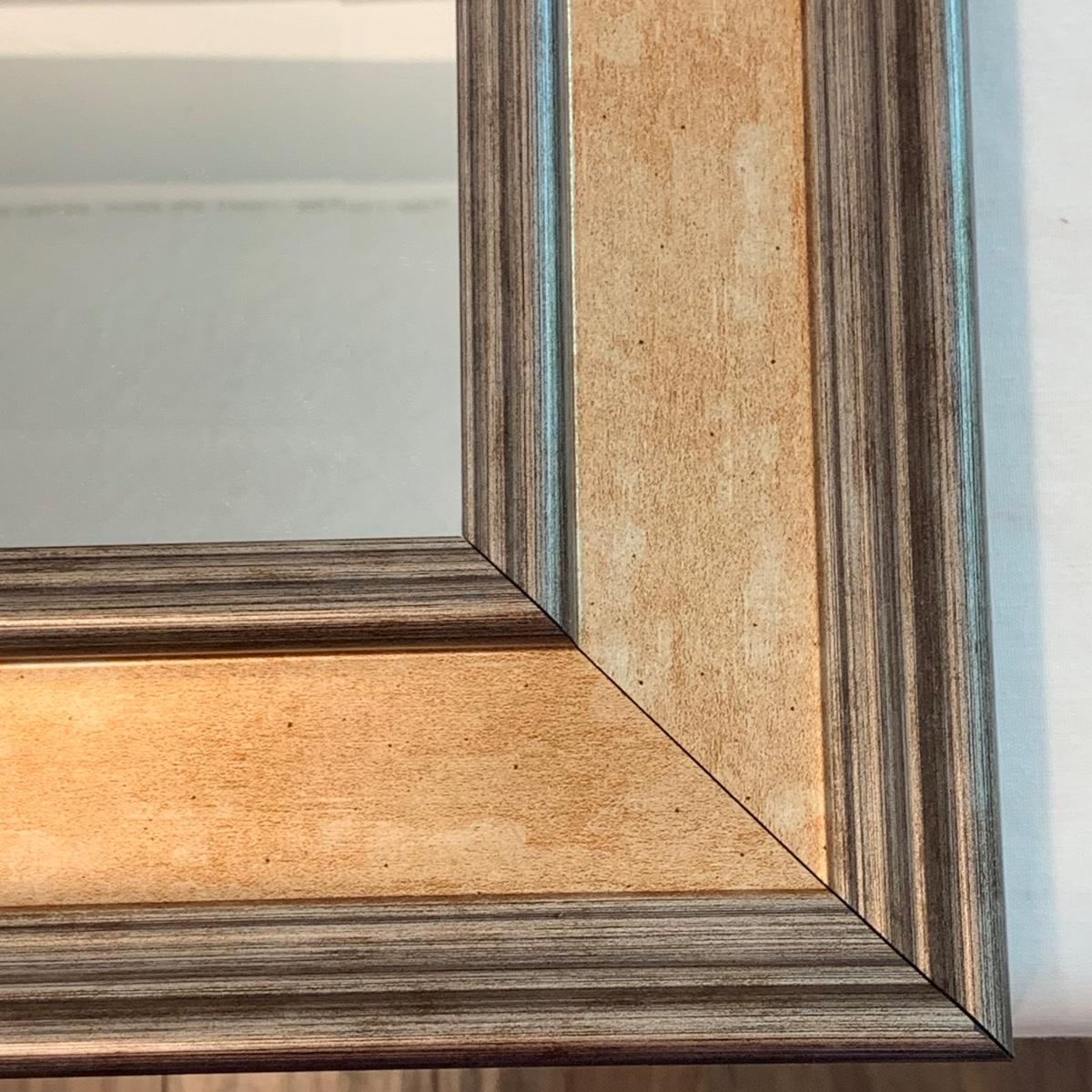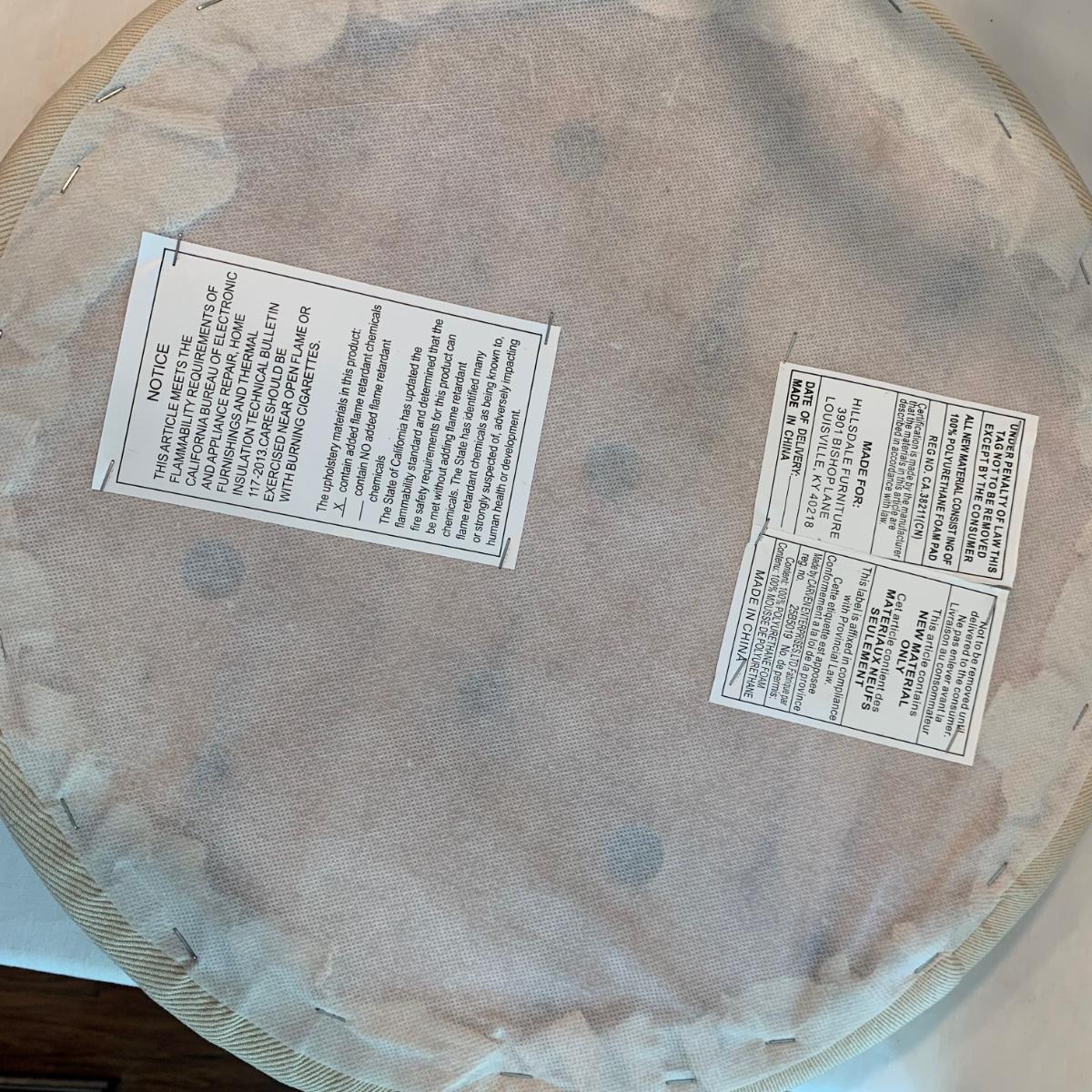 Swivel stool with decorative metal base and cream colored cushion from Hillsdale Furniture. Seat is 17.5”D and stool is 30”H. A replacement cushion is included as well. The clock and mirror frame are plastic. The clock is currently functioning. The mirror is beveled and the frame is 24” x 30”. Each item has a finish with brushed metal appearance.