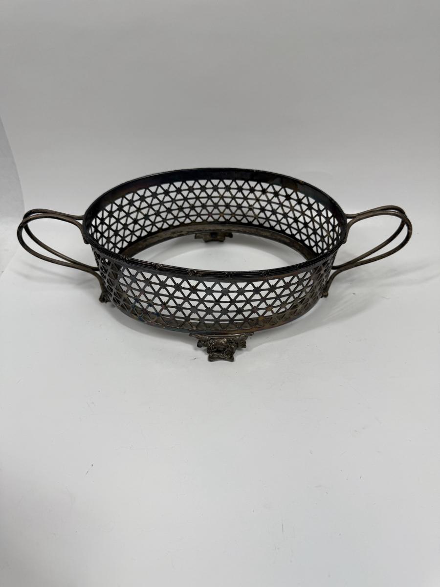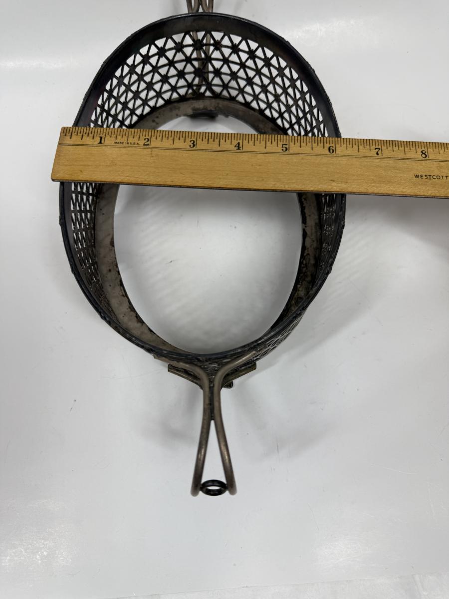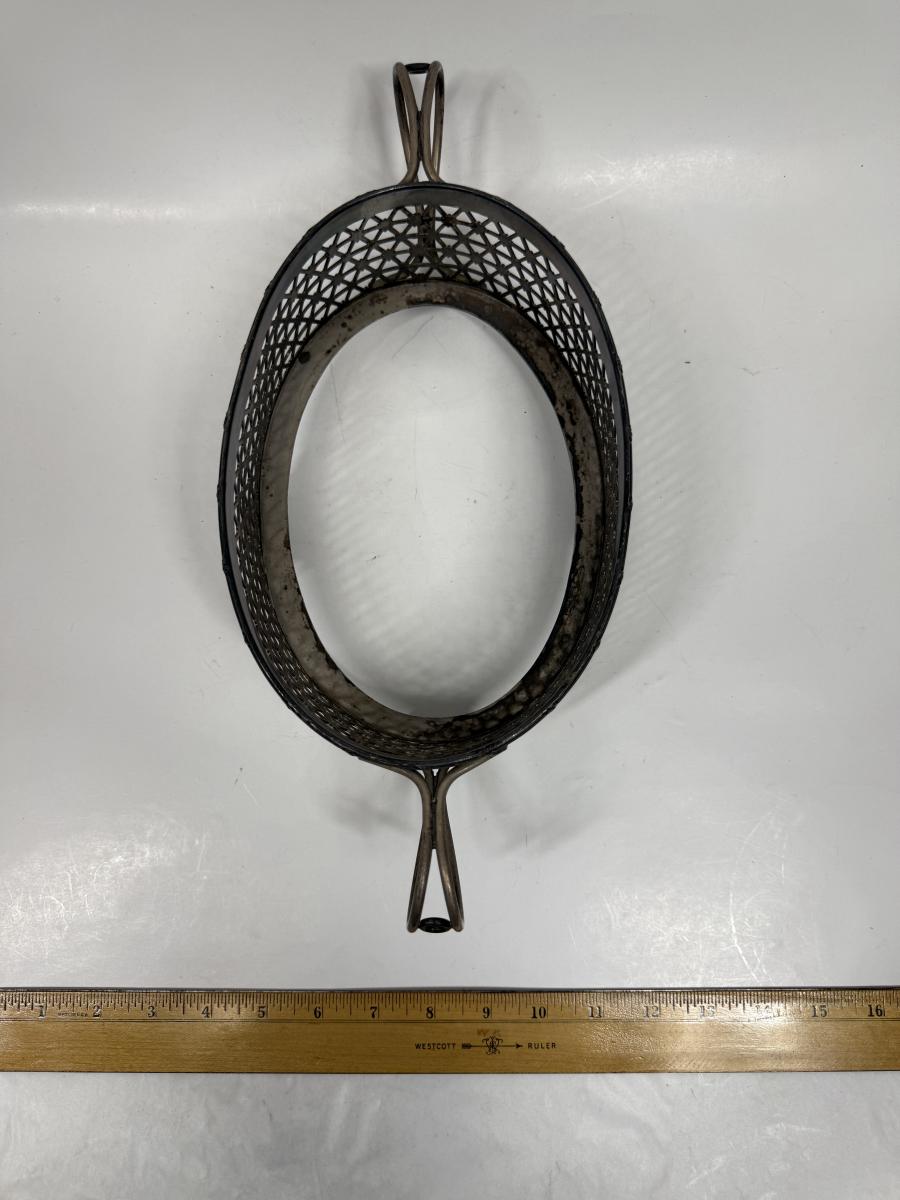 Holds an oval bowl of approx. 12" x 6", approx. 4" deep. Good condition.