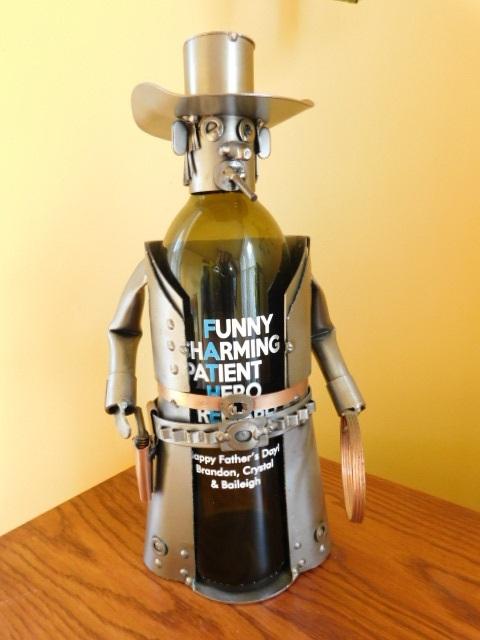 Hine and Kunse Folk Art Metal Art Cowboy Wine Bottle Decor