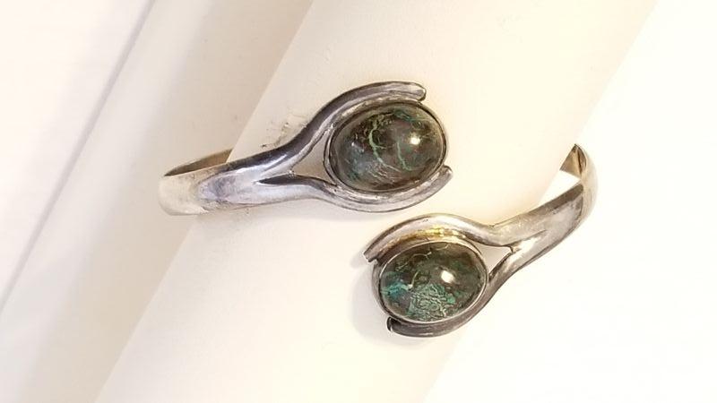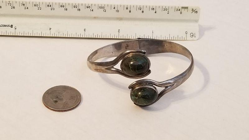 What an interesting beauty! Hinged bracelet, cuff style, marked, from I see it has 925 and I am unable to make put any of the other markings. Just a great piece to add to your collection.