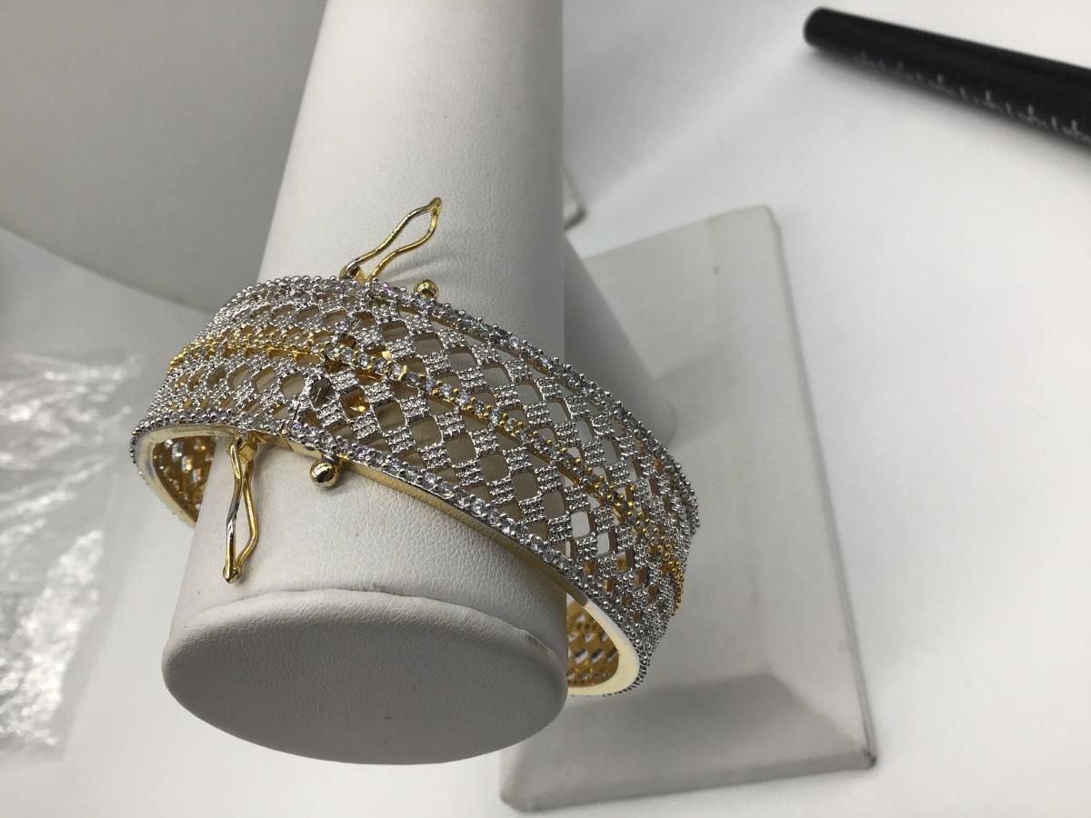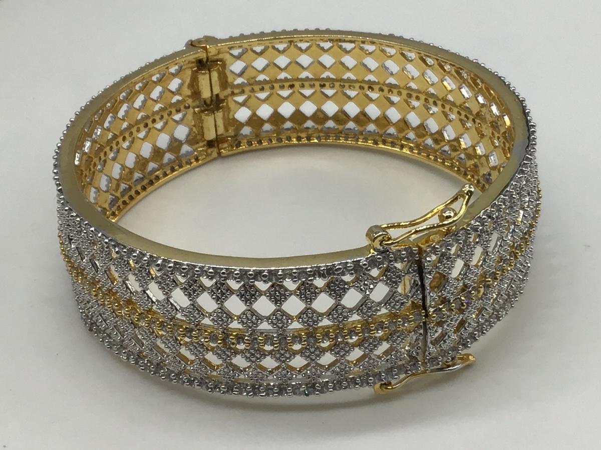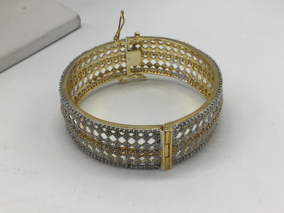 Hinged Gold Silver Tone Costume Bracelet wLock