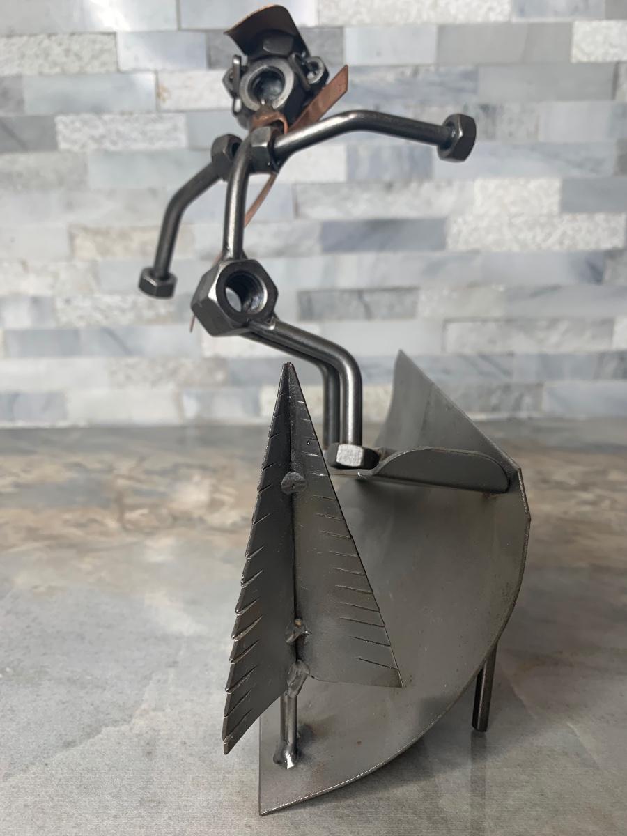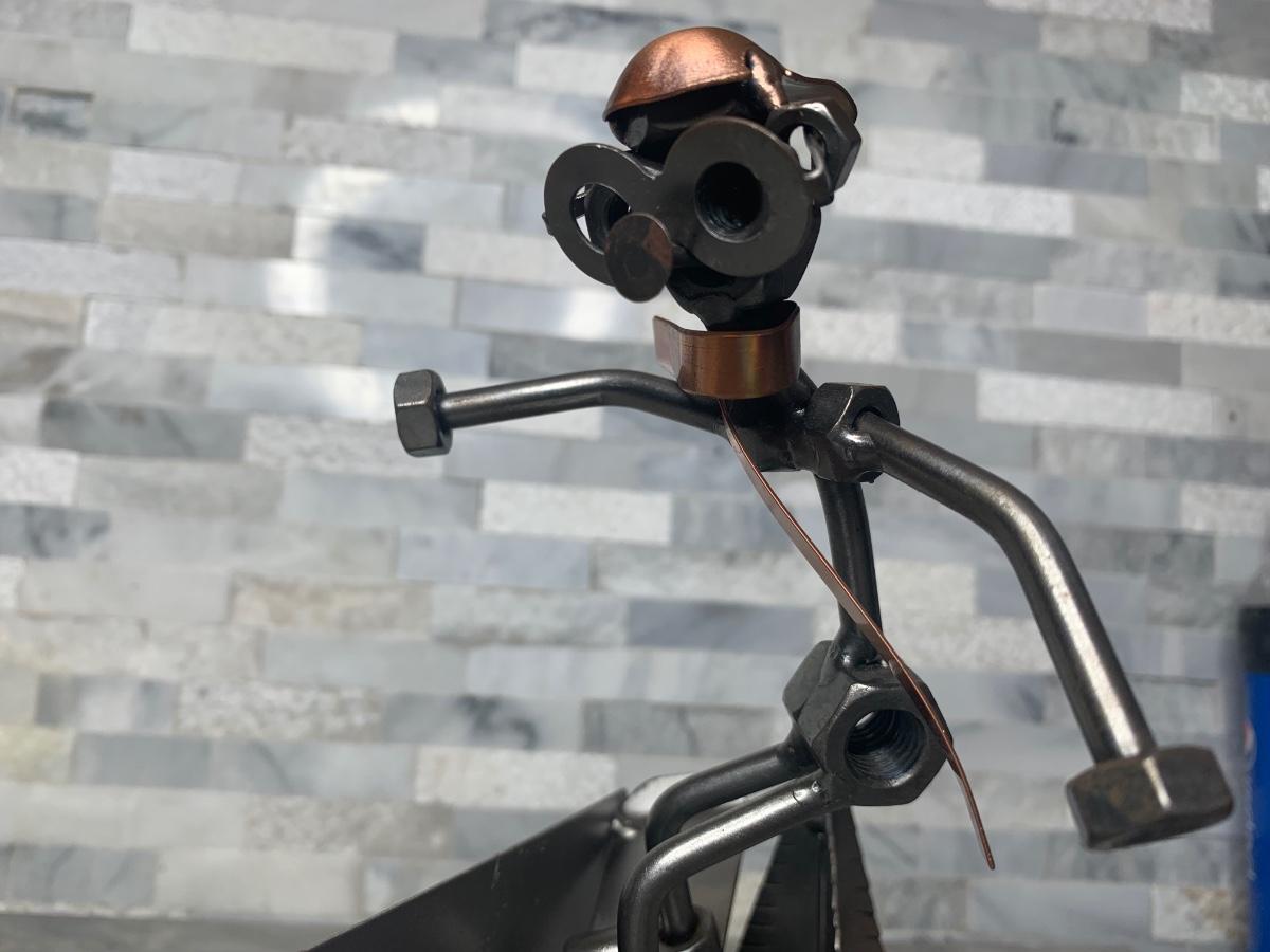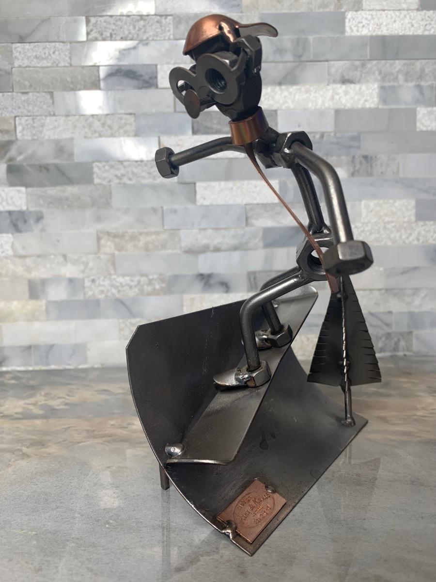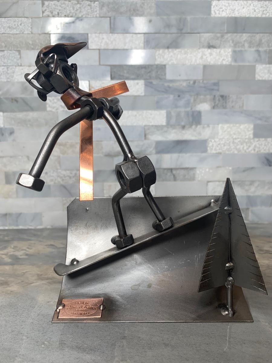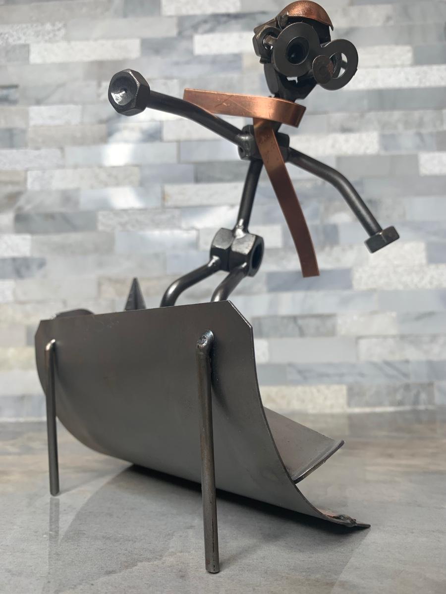 super cute would make a great gift for anyone who loves snowboarding , metal art, nuts and bolts, or just to add a fun sculpture to the office!