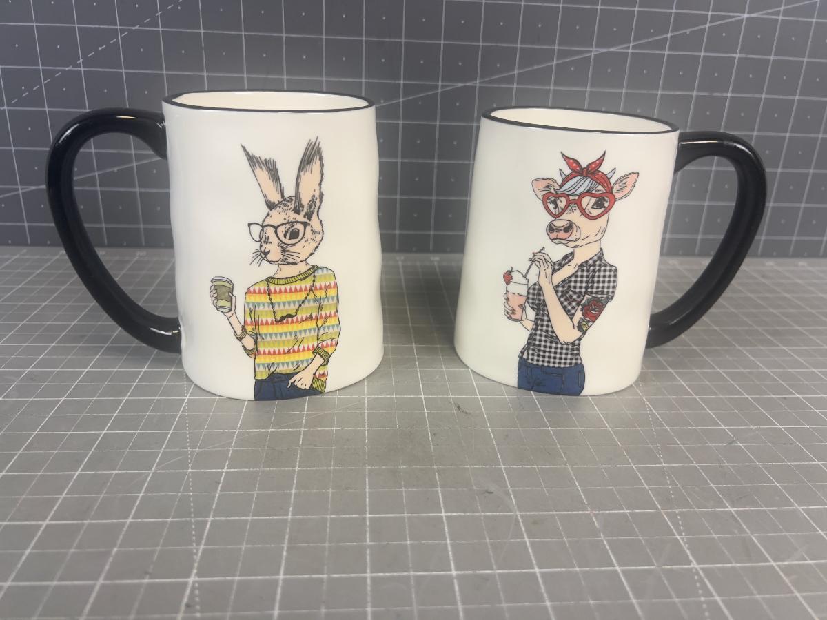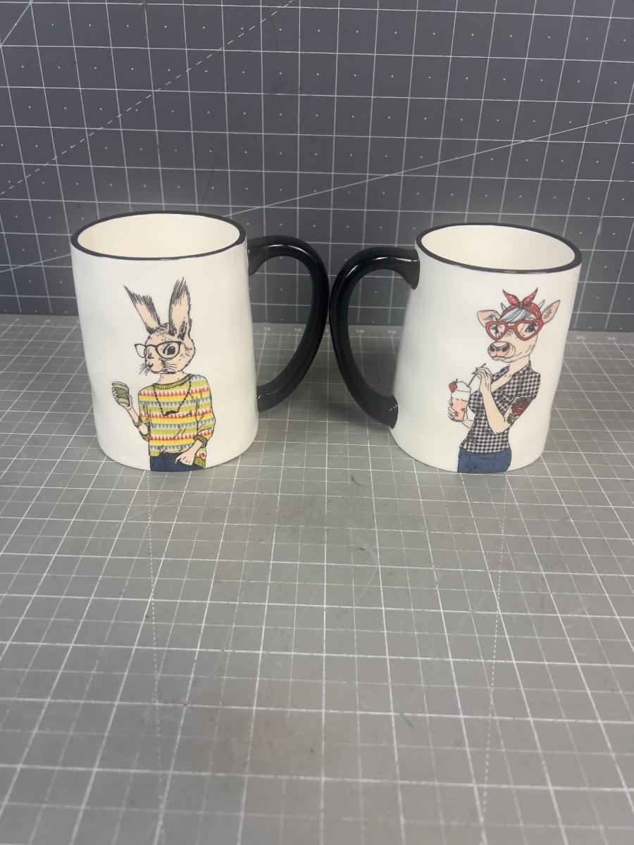 Hipster Animal Mugs, Designer, Pair