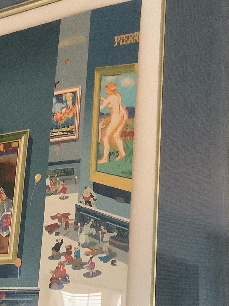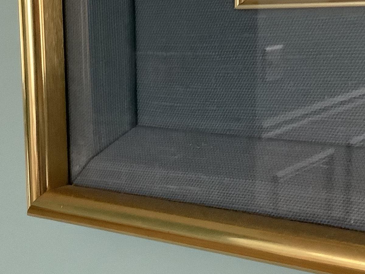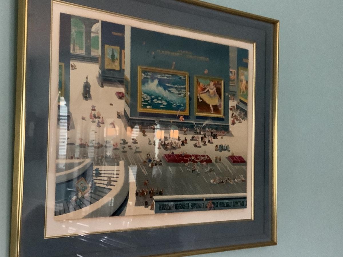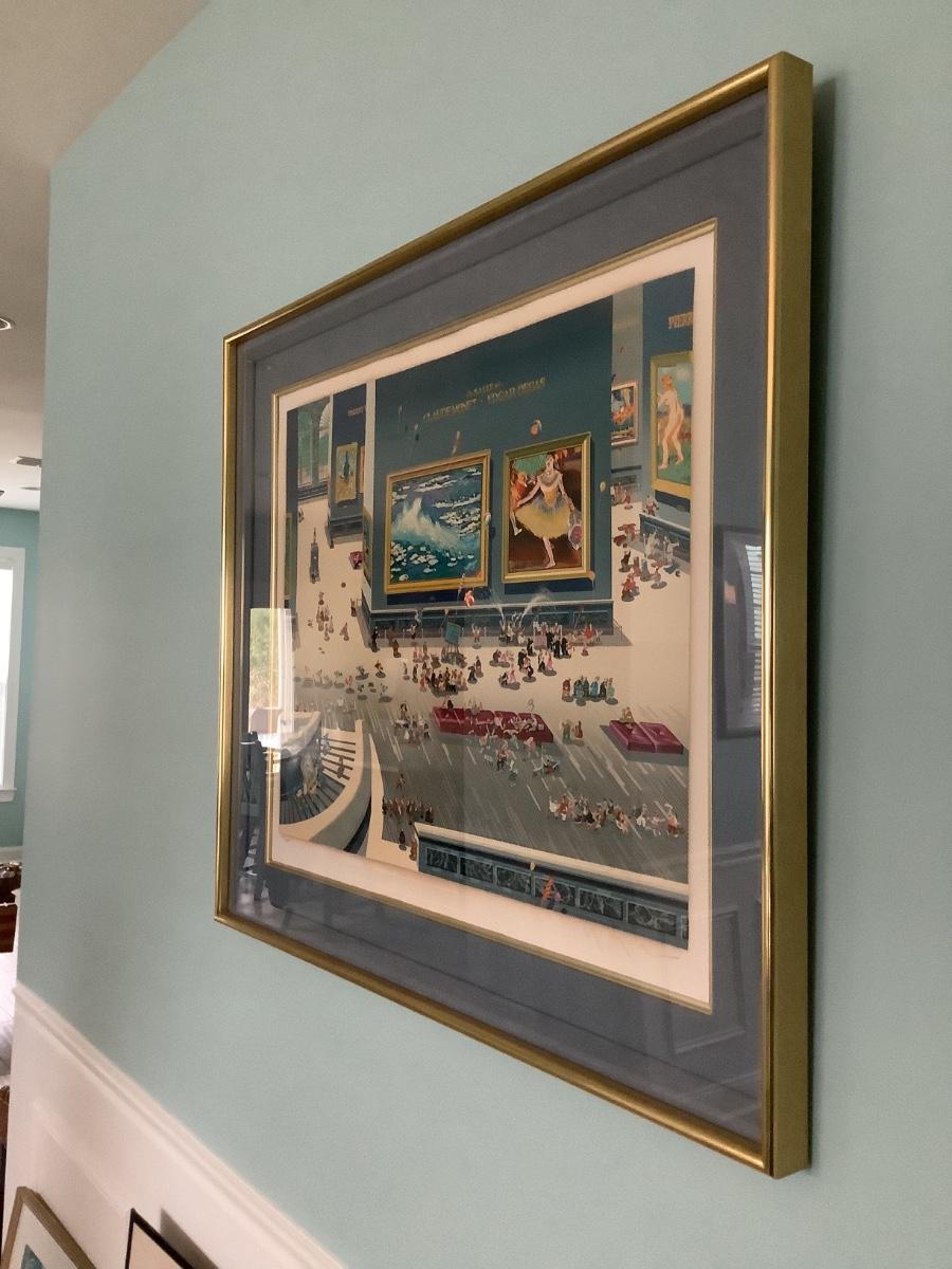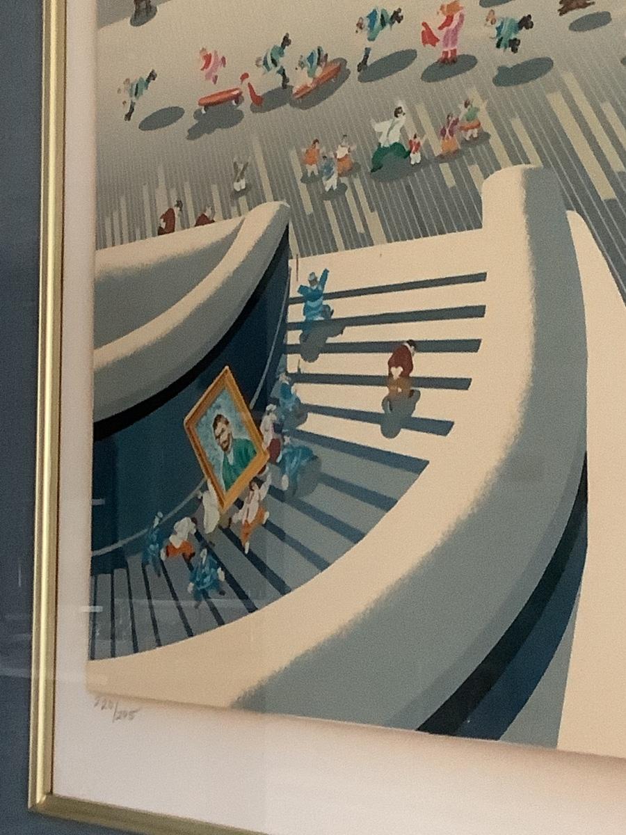 Hiro Yamagata “Museum” serigraph linen matting, gold trim, gold frame 38”W, 33”H