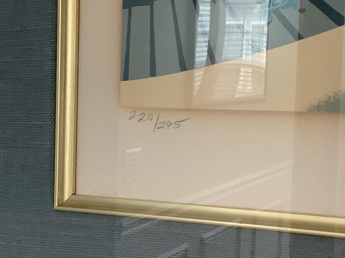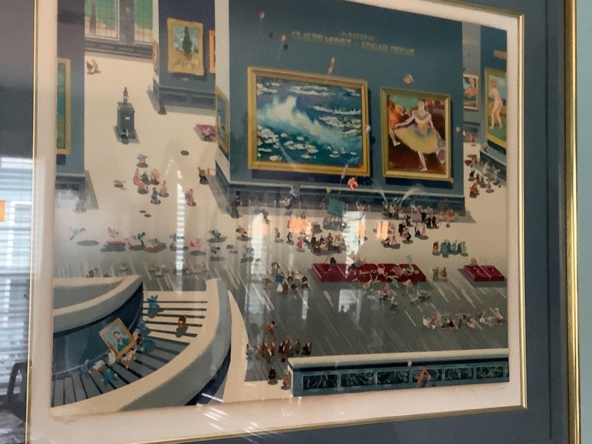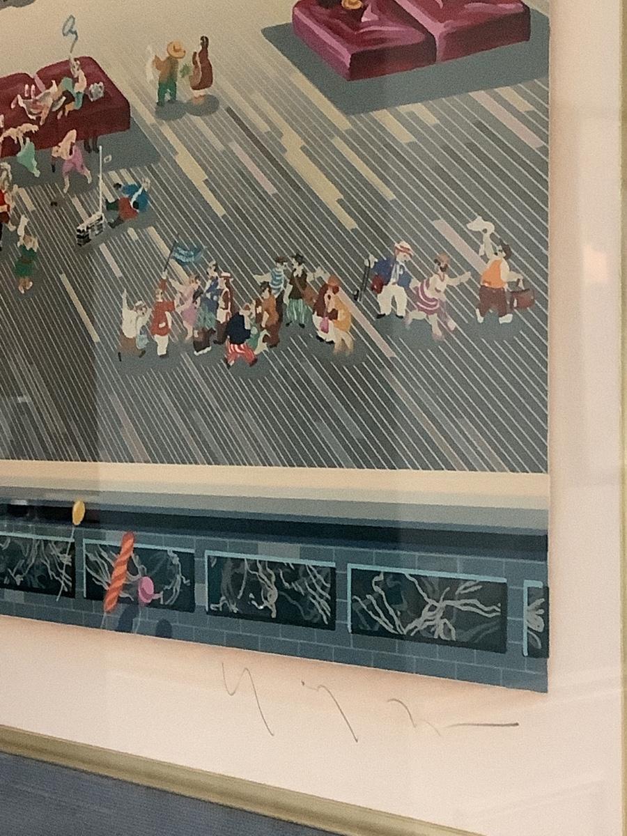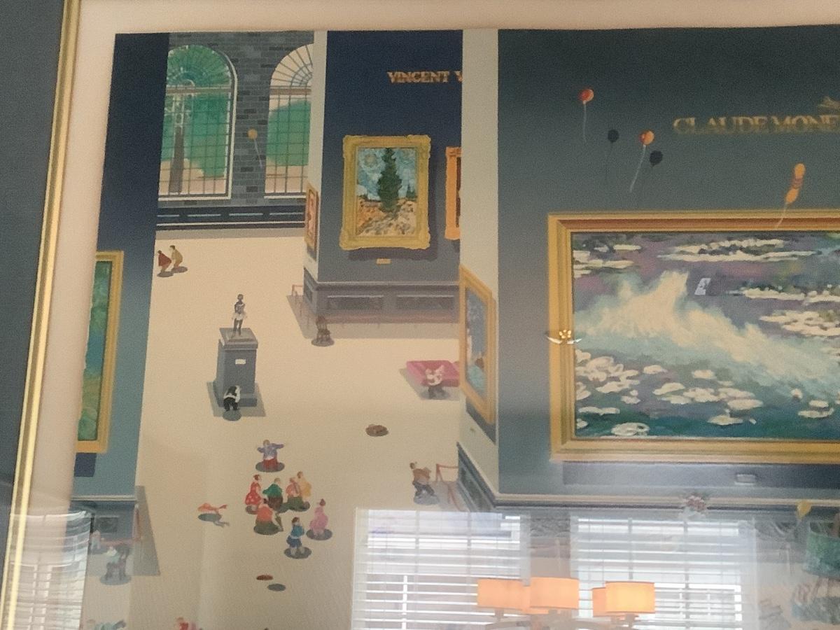 Hiro Yamagata “Museum” serigraph linen matting, gold trim, gold frame 38”W, 33”H