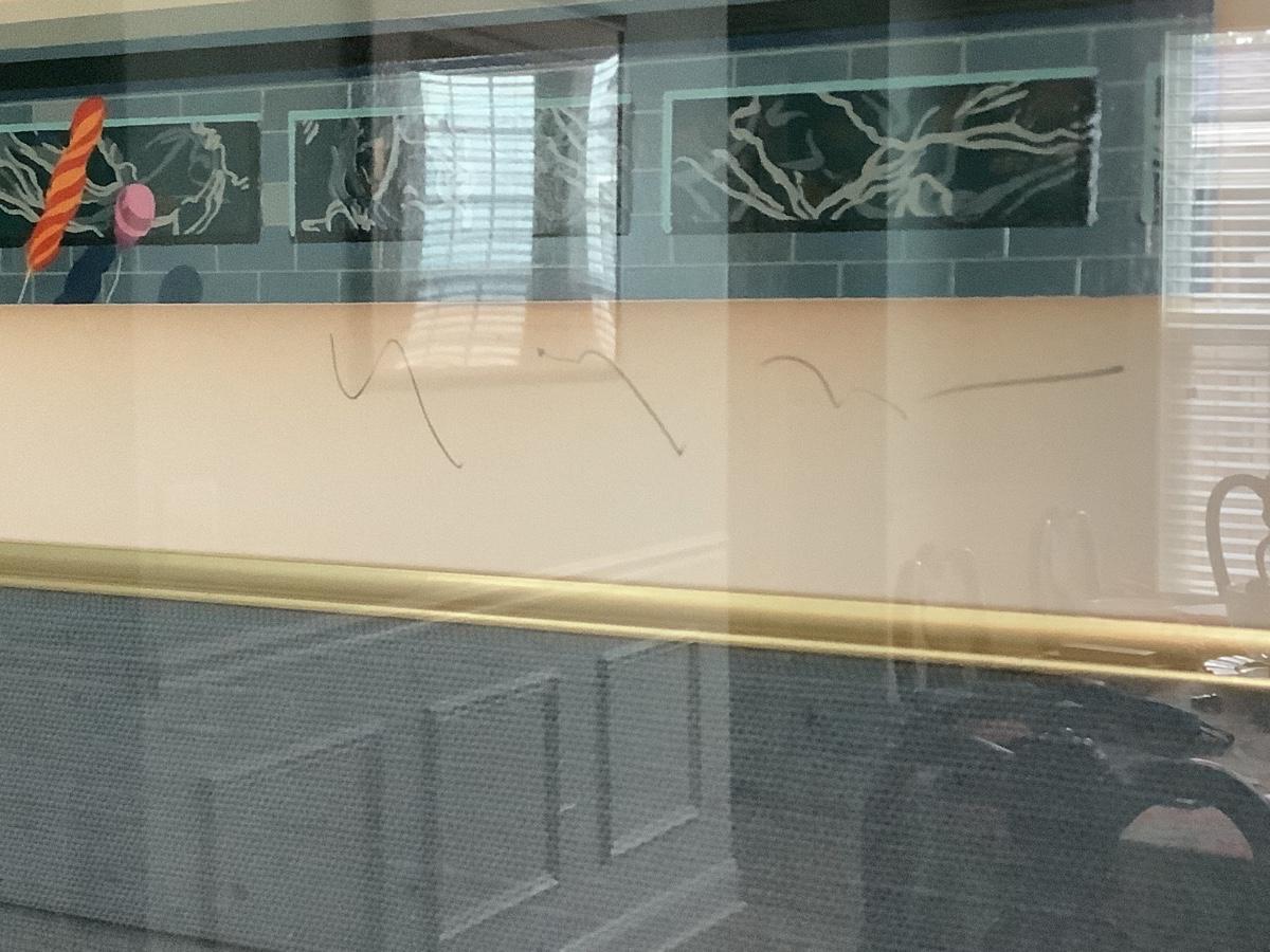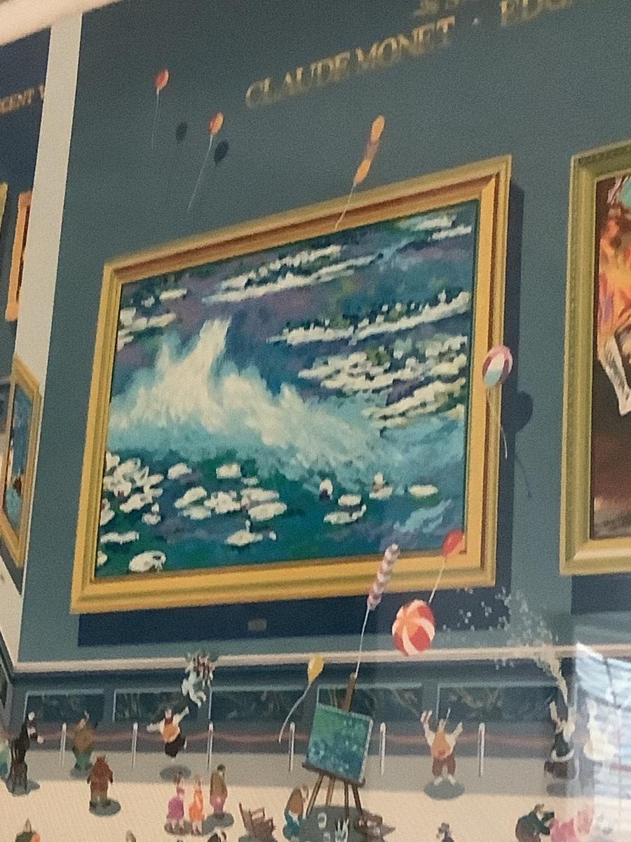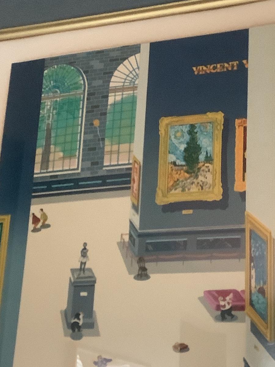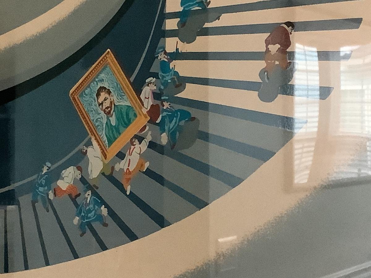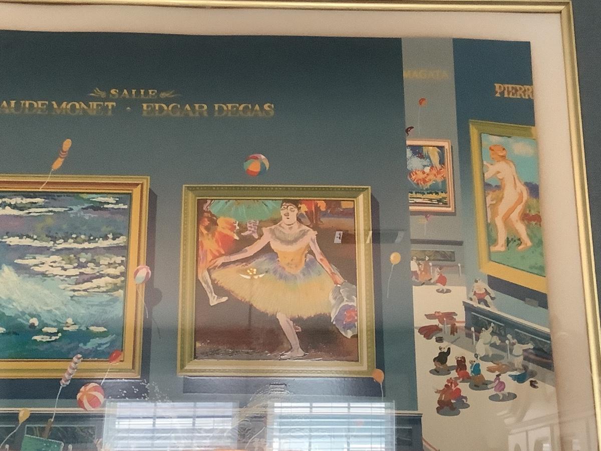 Hiro Yamagata “Museum” serigraph linen matting, gold trim, gold frame 38”W, 33”H