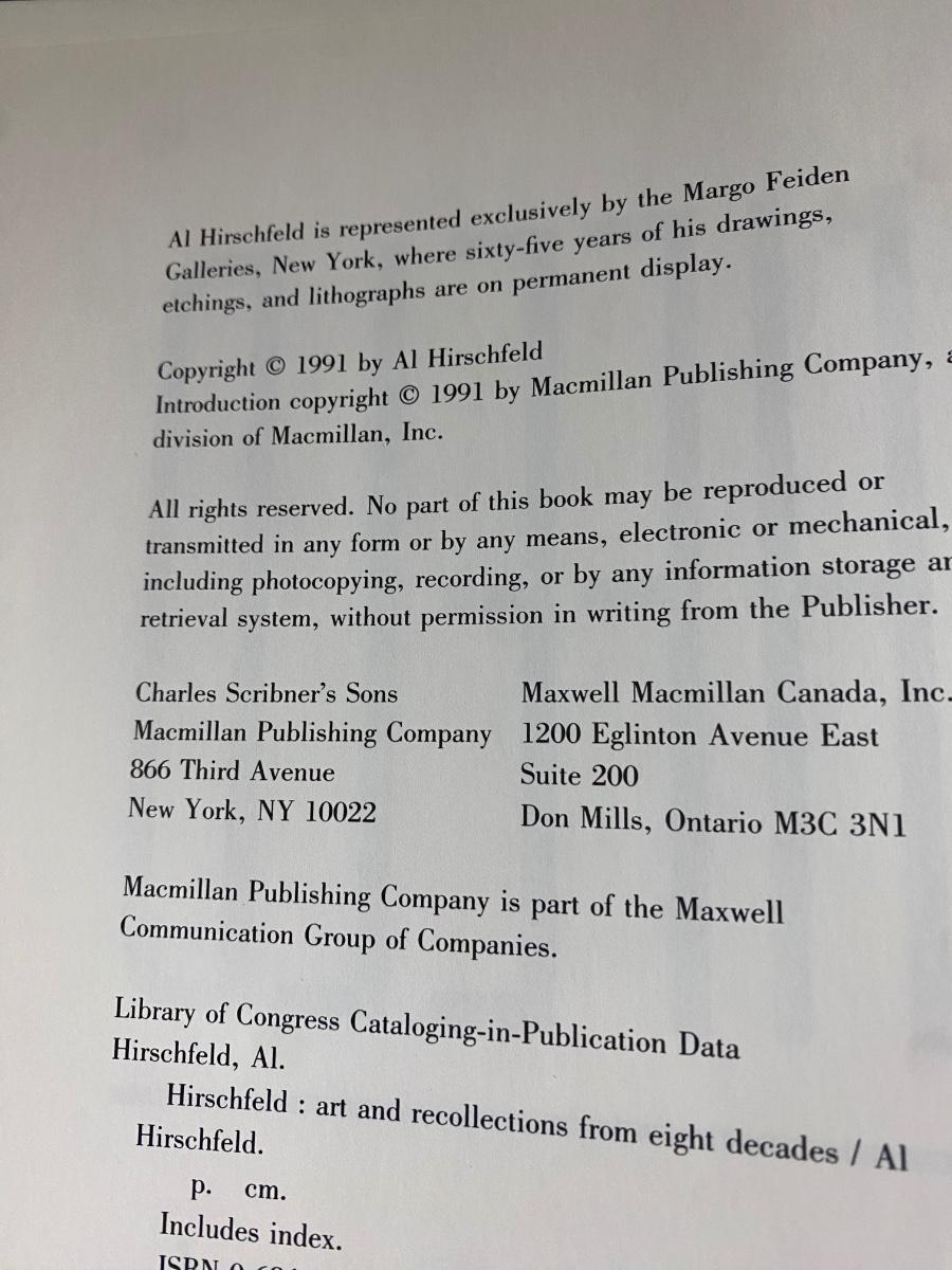 Hirschfeld: Art and Recollections From Eight Decades Hardcover - 1991, hardcover, dust cover.