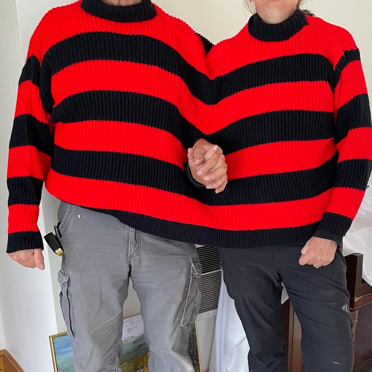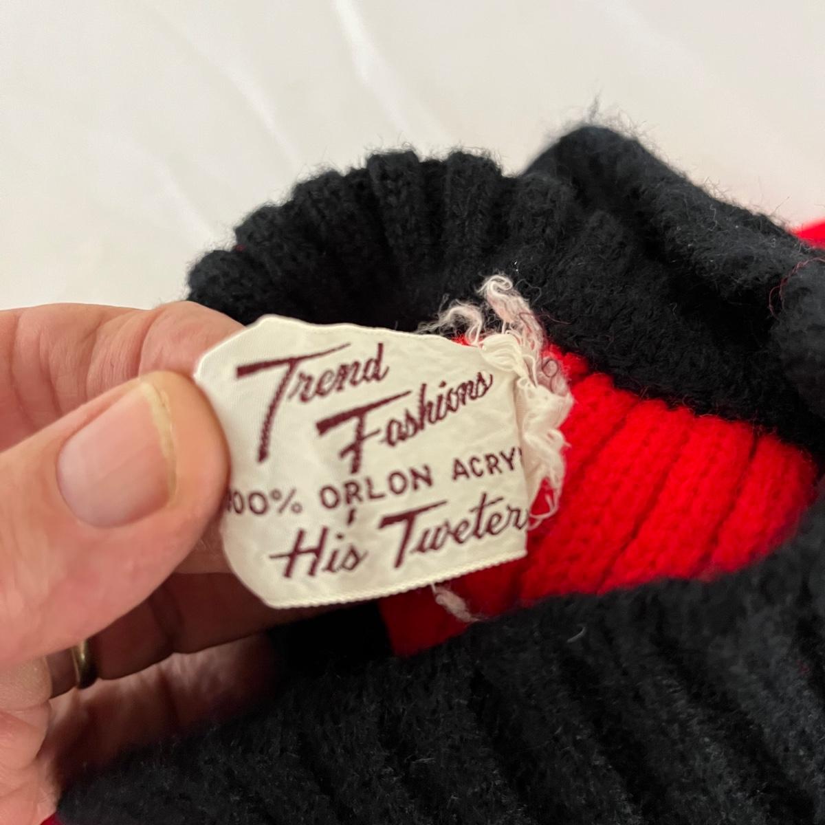 This his and her Tweter is made by Trend Fashions of 100% Orlon Acrylic and appears to be a size large.