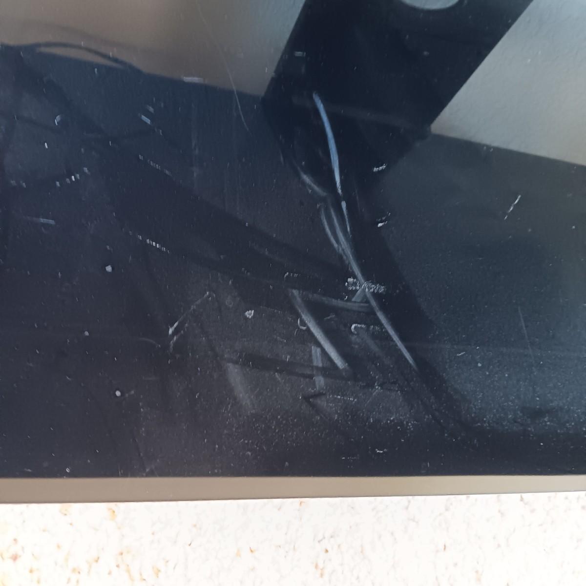 THE BOTTOM GLASS SHELF HAS SOME SCRATCHES